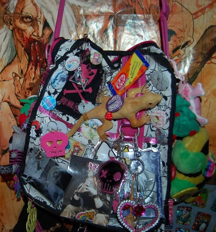Wird halt langsam dünn q.q Aber die Schrift “D’espairsRay”, die Buttons und das große Bild der Band, was ich einlaminiert habe, habe ich alles selbst draufgemacht. Auf den Schriftzug bin ich sehr stolz und die Tasche nehm ich fast jeden Tag überall hin, da hängt mein Herz dran, allein wegen der Band Q_Q