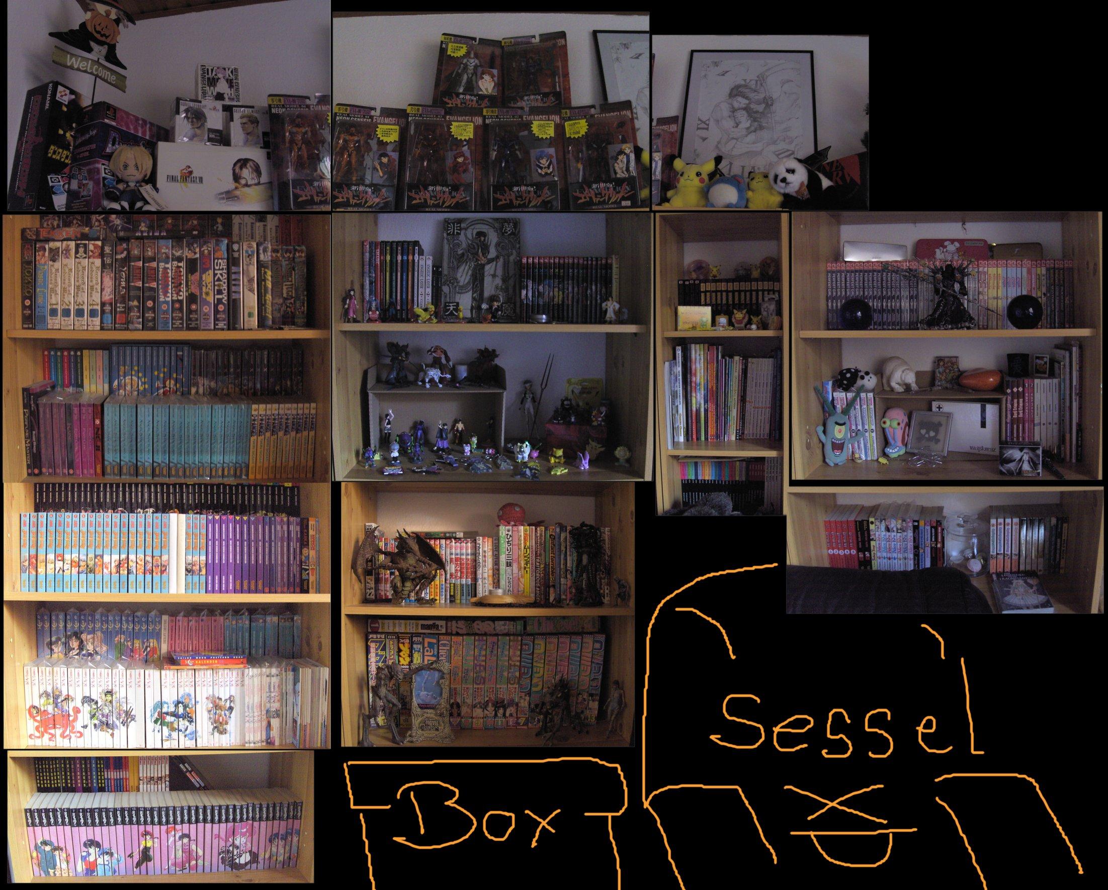 Bei mir hätte es keinen Sinn, meine Mangasammlung zu fotografieren, weil die mittlerweile bald 300 Stück (wenn ich richtig schätze) in zwei Reihen hintereinander in meinem Lieblingsschrank stehen :hehe: (Ich hab einen Liatorp-Schrank von IKEA - zweieinhalb Regalböden sind luftdicht mit Manga vollgestellt |D)