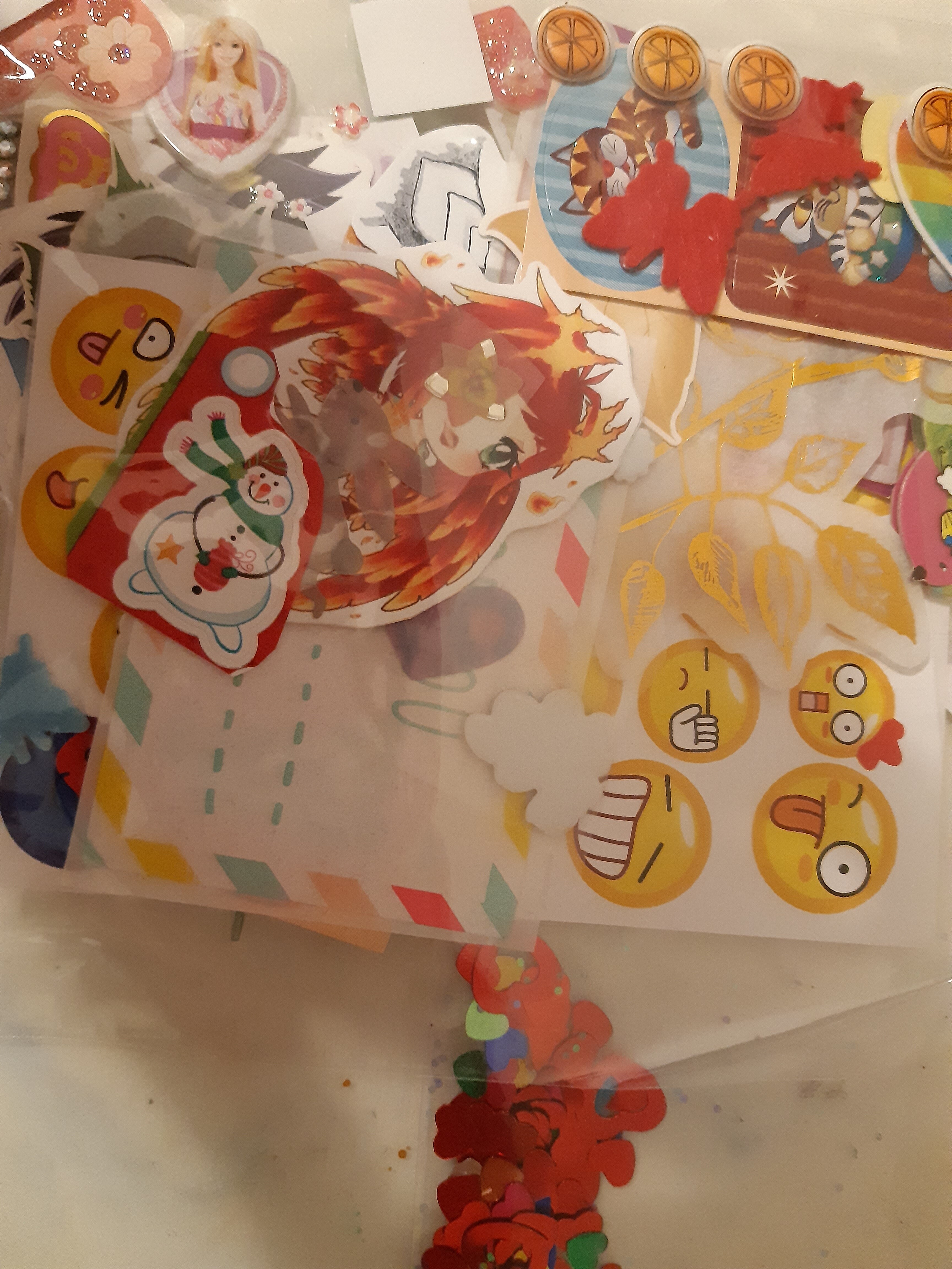 Falls der Empfänger nichts dagegen hat, würde ich das Gewicht nutzen und dem Paket zusätzlich ein wenig Überraschungs-Material hinzufügen mit aus meinem Bestand aussortierten Dingen wie z. B. Briefpapiere, Glitzer- / Holopapier, evtl. ein-zwei Stifte und etwas Bastelmaterial ^_^