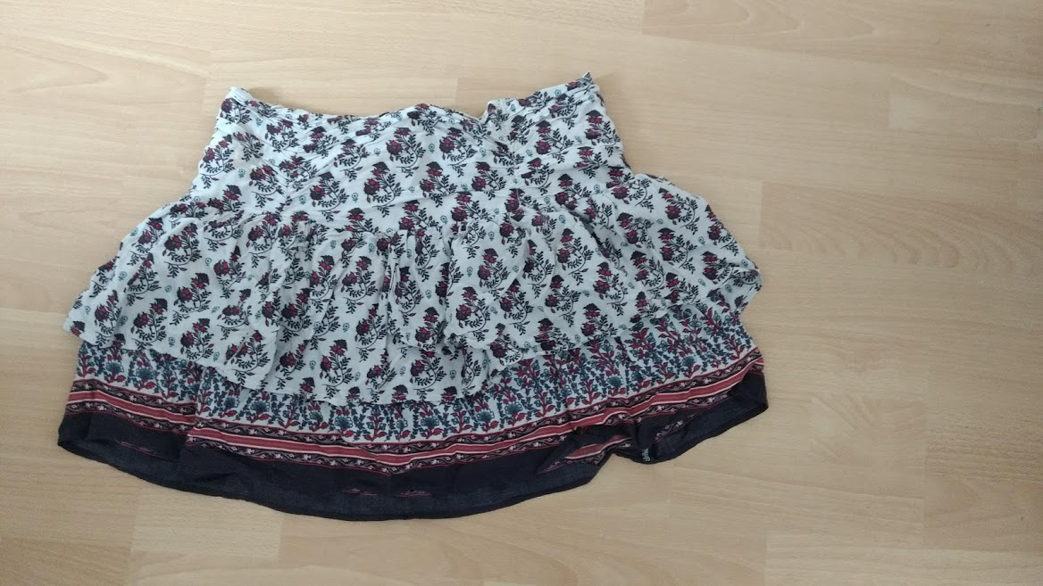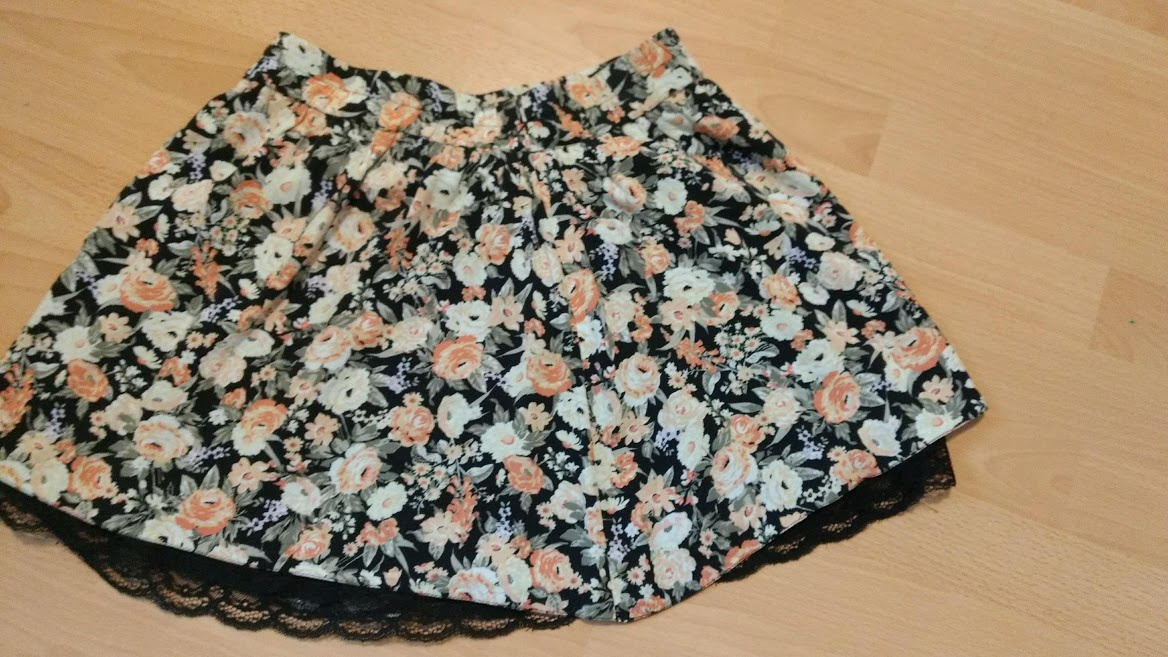 Luftiger Minirock aus Viskose mit Blumenprint. Hat einen schwarzen Unterrock mit Spitzenborte. Von C&A in Größe 36.