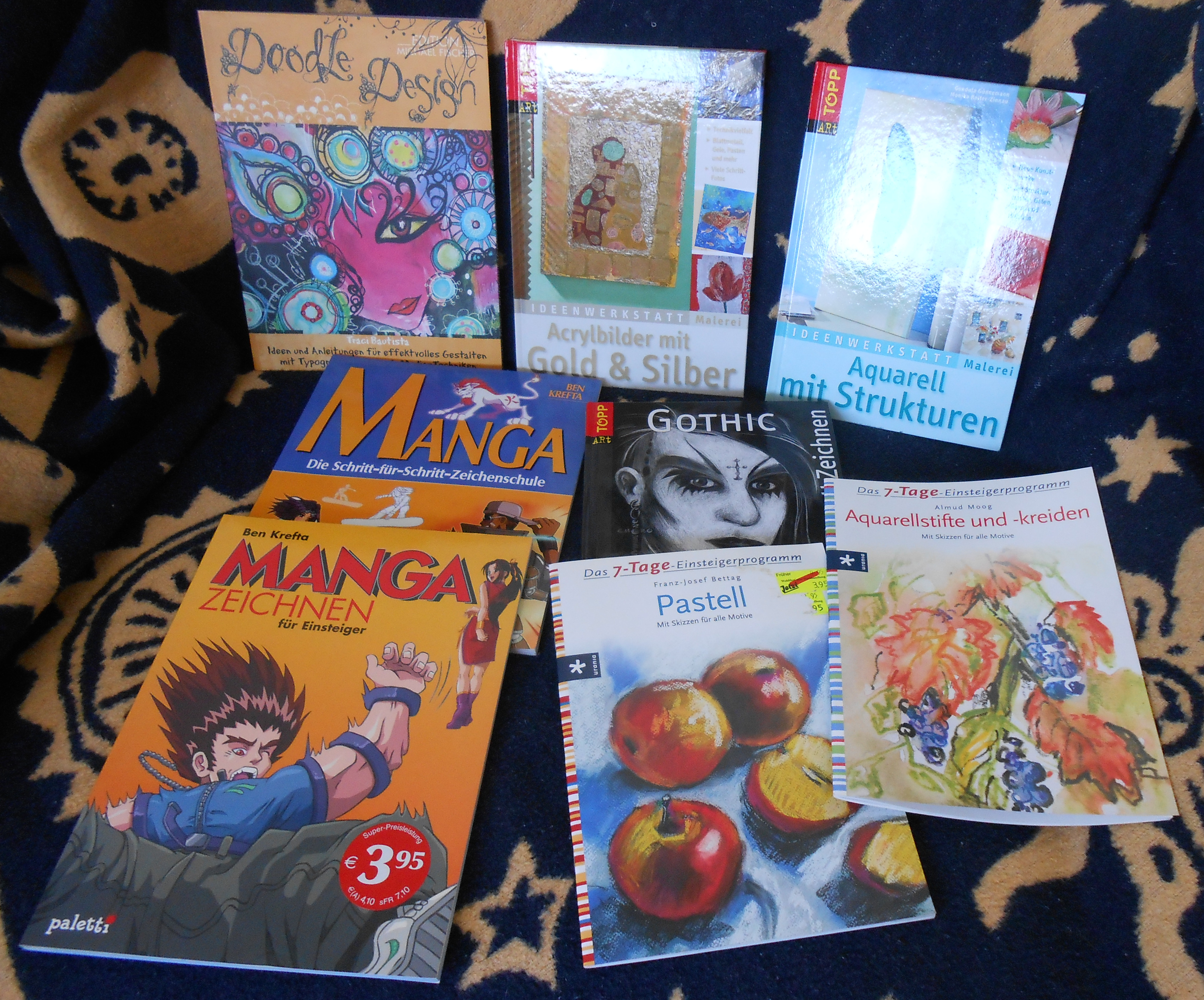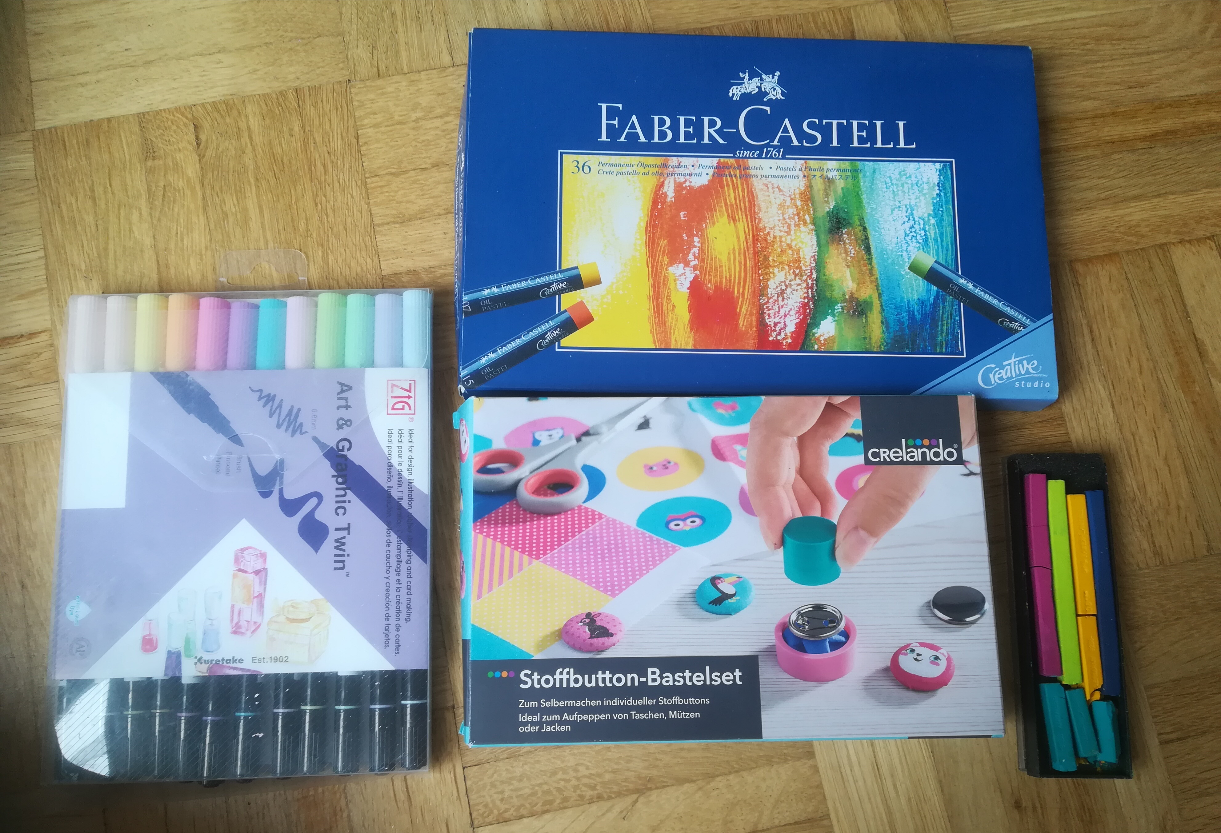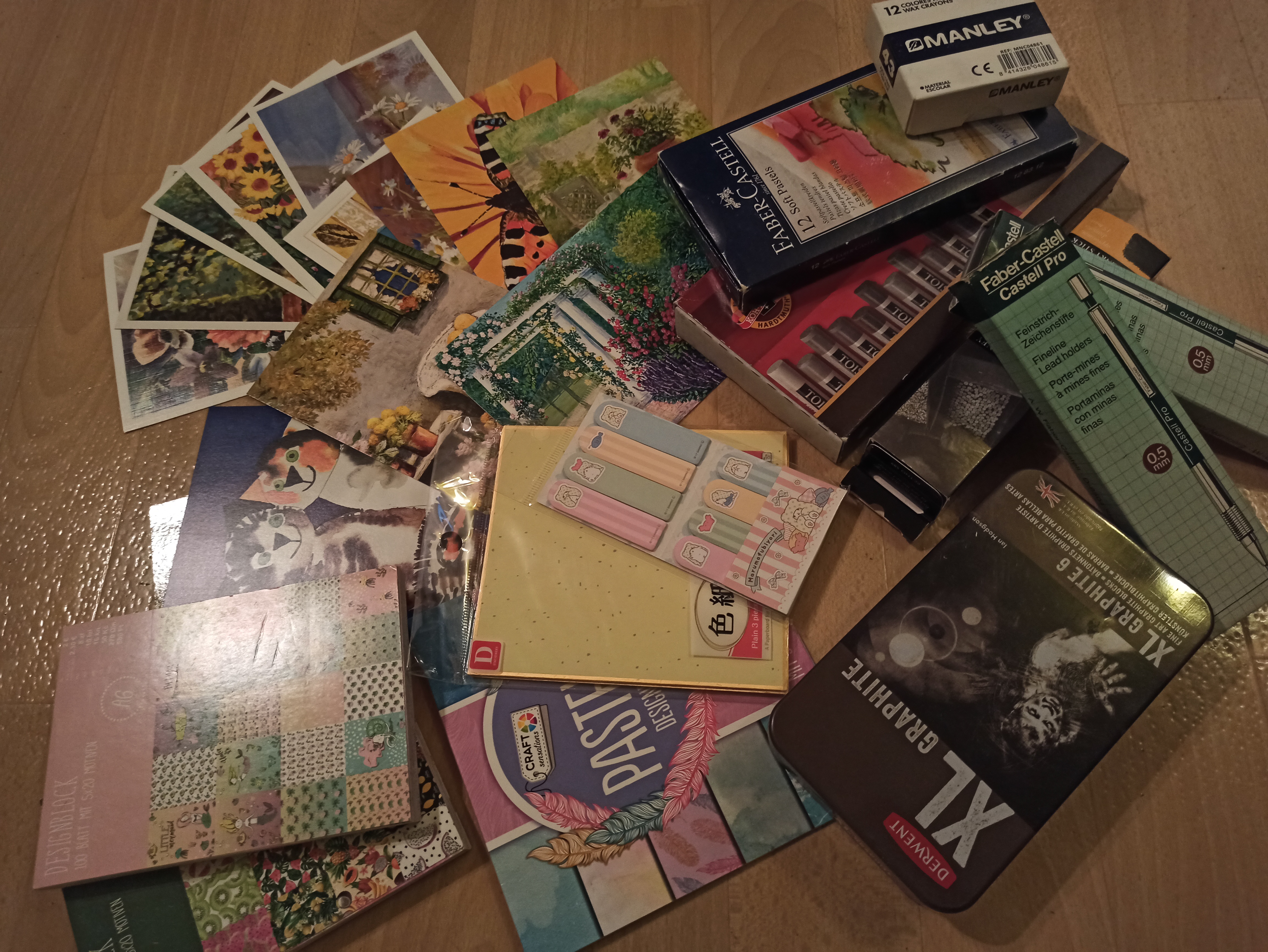Ich habe meine Bastel/Zeichenmaterialien aussortiert und dabei ein paar Sachen gefunden, die zu Schade zum wegwerfen wären, die ich aber nicht benutze: