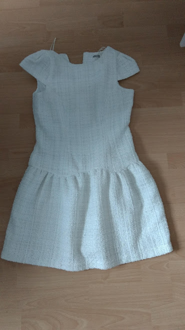Weißes Bouclé-Kleid im Chanel Look von Orsay Größe 38. Der Rock sitzt auf der Hüfte.