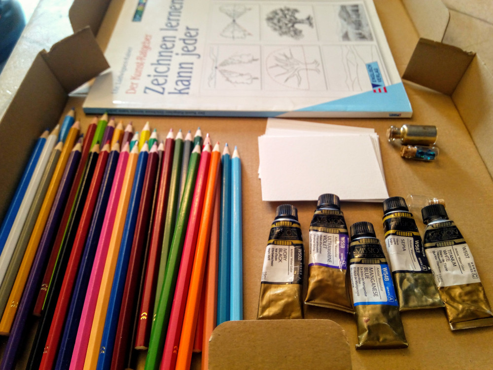 Aquarell, Mixed Media, Markerpapier usw zum austesten.
