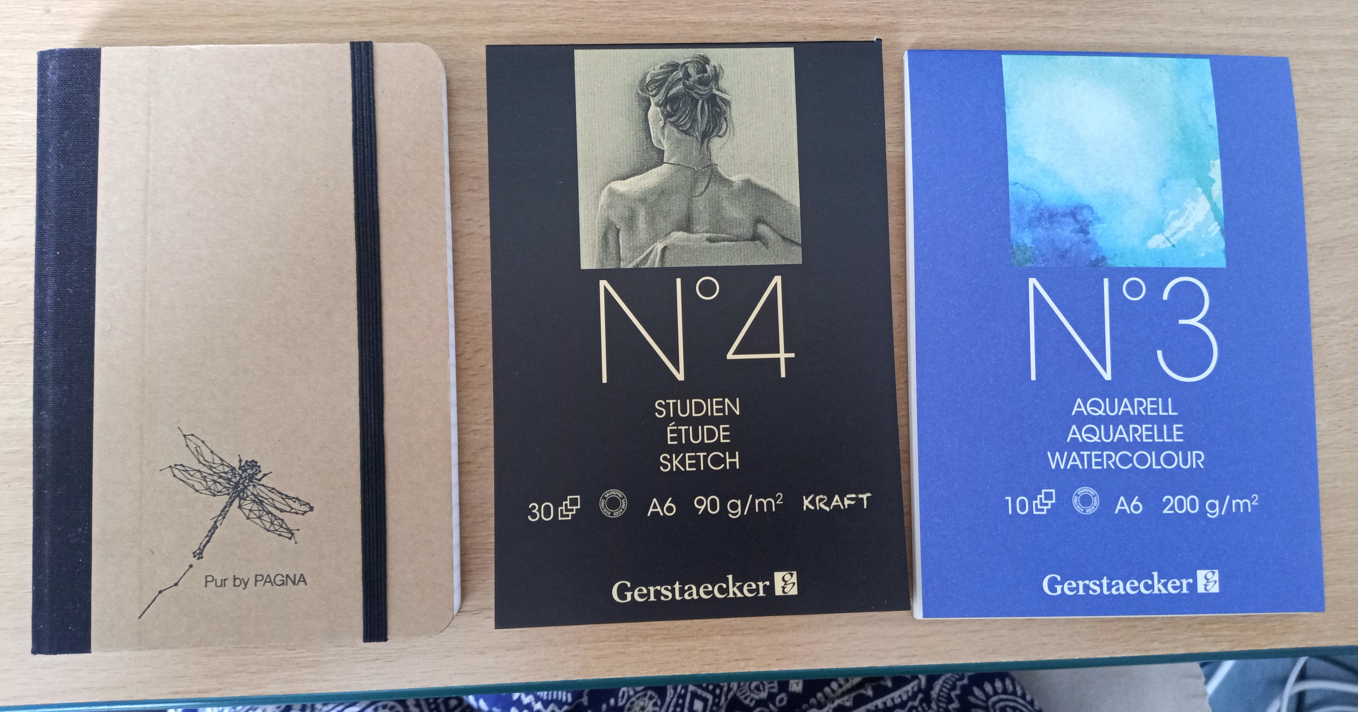 * alle für Aquarell geeignet, exakte Marke weiß ich leider nicht mehr, die dünneren (300g/m²) könnten Fabriano sein, die dickeren (600g/m²) mit großer Wahrscheinlichkeit Hahnemühle “Leonardo”, Rückseite ist mit X gekennzeichnet