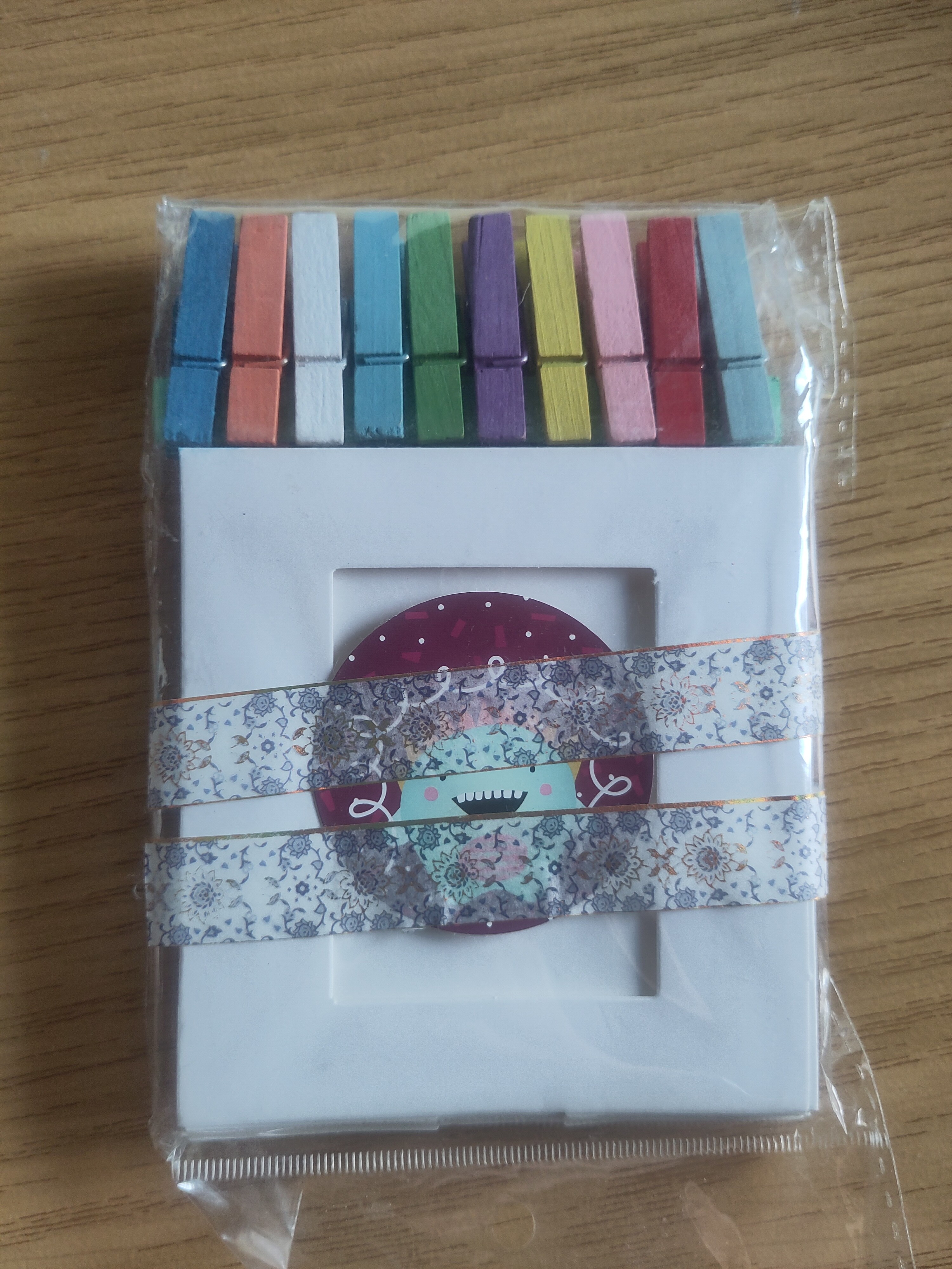 -Leine mit Holzwäscheklammern zum Aufhängen von Bildern