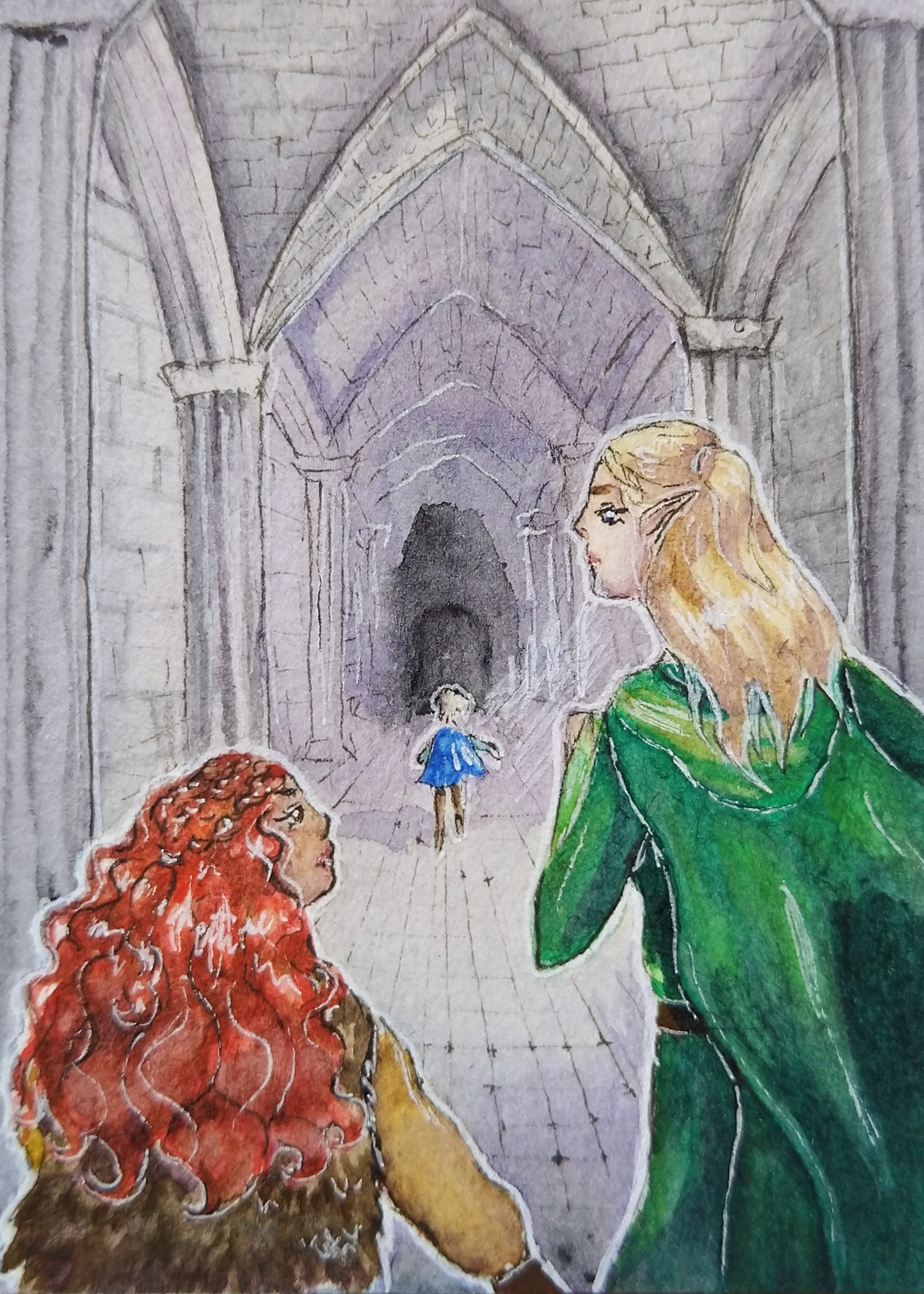 - Verfolgungjagd mit der kleinen Zwergin klingt spannend. Da könnte man sich überlegen ob der Junge in eine Sackgasse läuft und es dann zb im nächsten Bild zu einer Konfrontation kommt. Oder man lässt ihn noch ein bisschen durchs Schloss laufen.