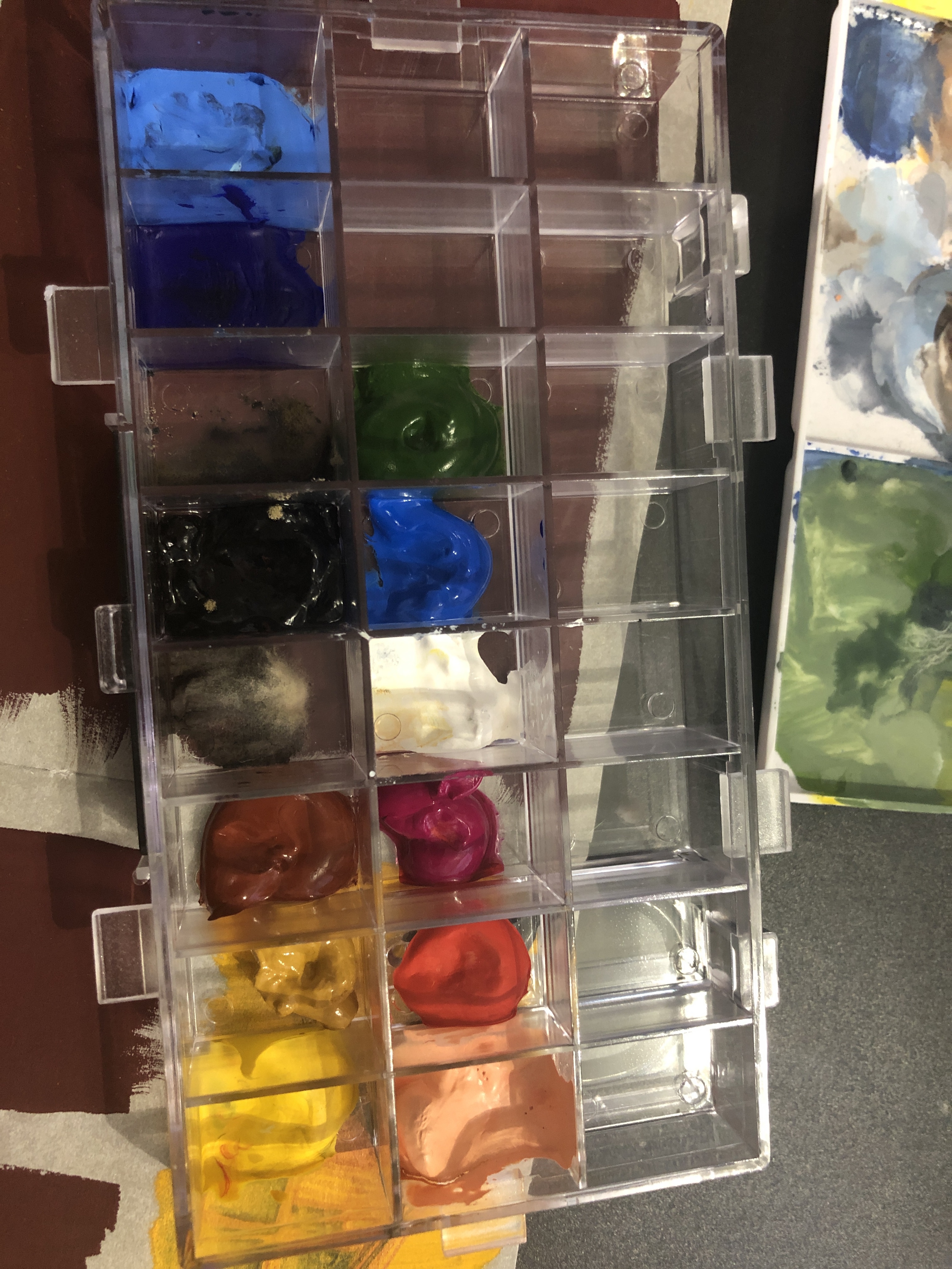 Auf der Palette sind die Farbreste gut getrocknet, manche haben Risse bekommen, andere hab ich von Aquarell nicht unterscheiden können (außer das samtige Mattsein natürlich).