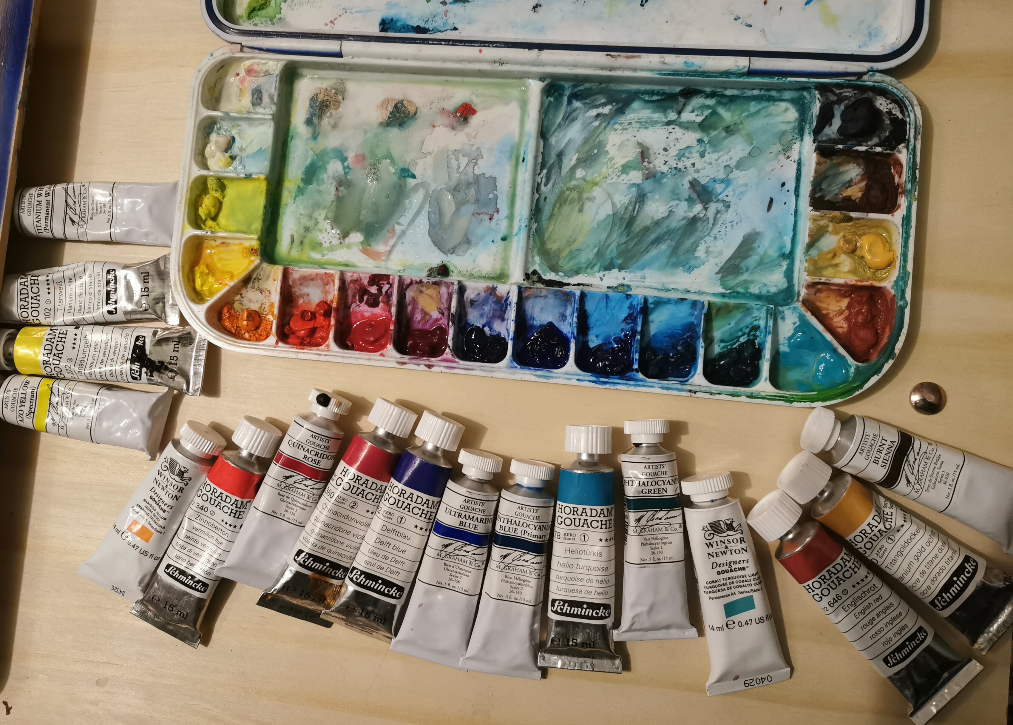 Ich selber habe in meiner Palette aktuell größtenteils Horadam & M.Graham und 2 W&N.