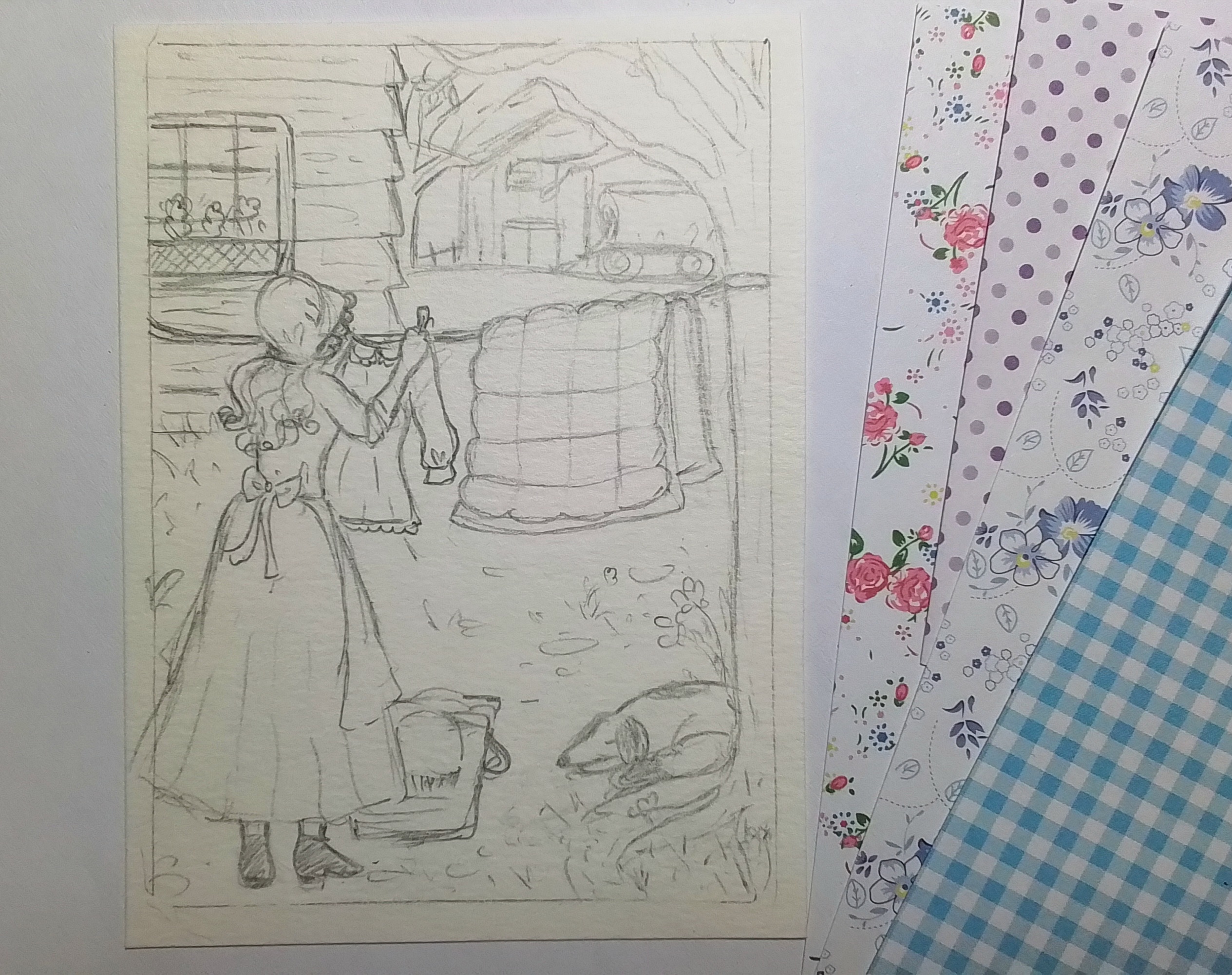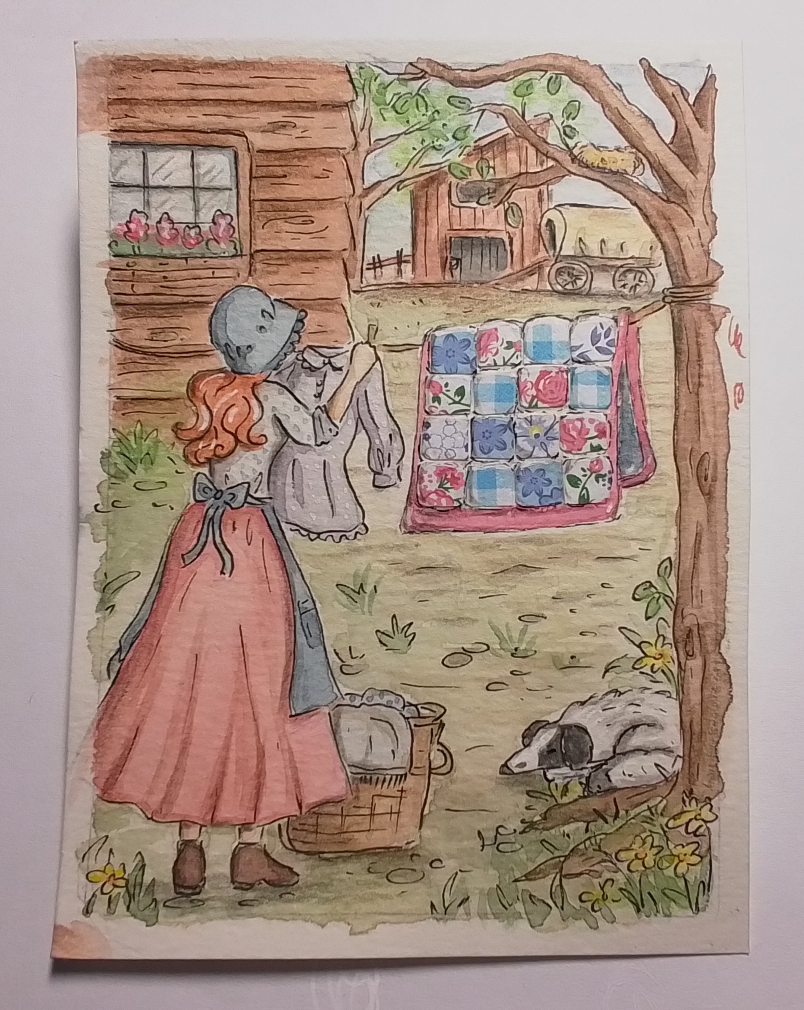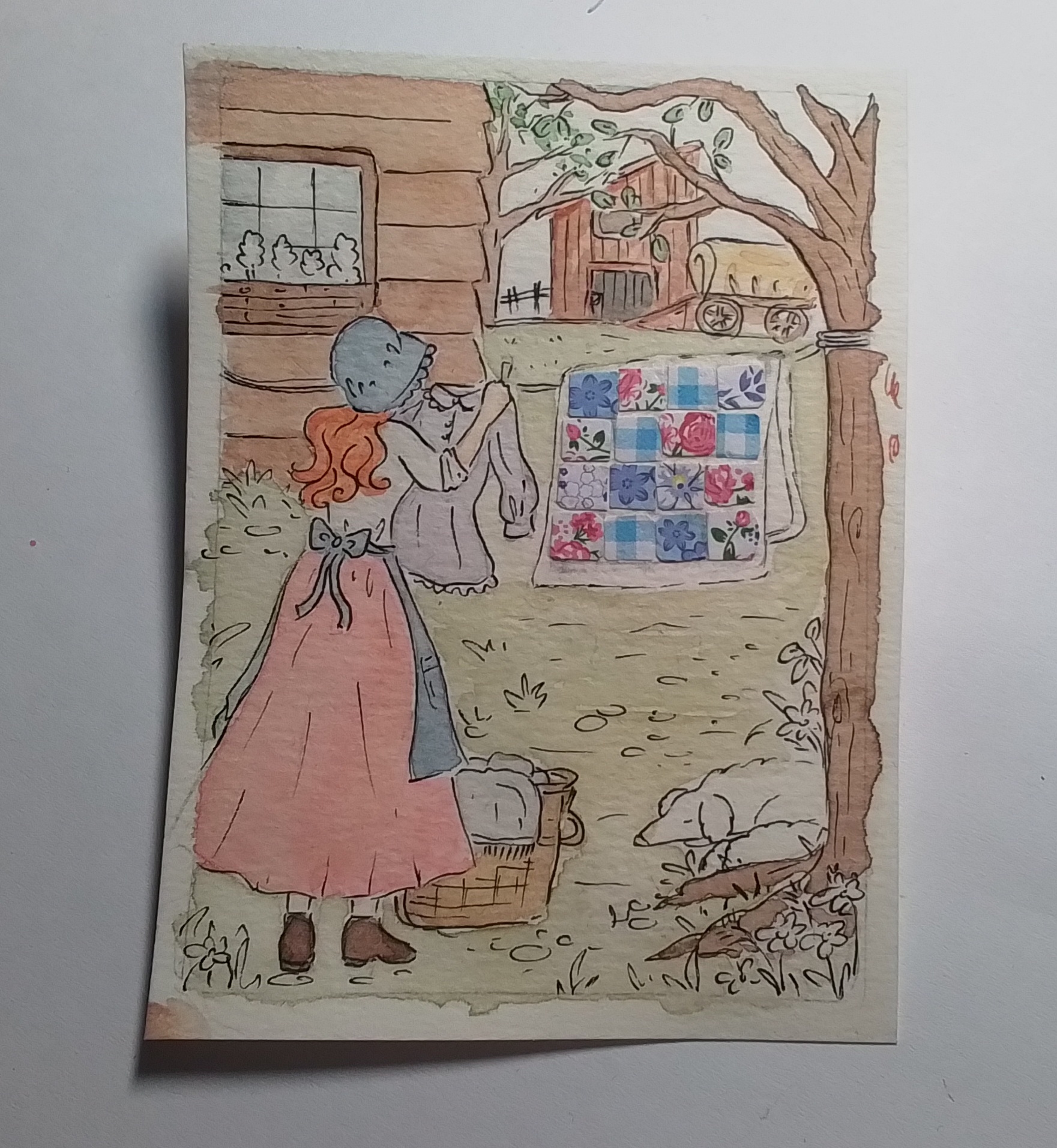 Ich habe noch eine andere Skizze gemacht Wäsche aufhängen, inspiriert aus der Serie Unsere kleine Farm ^_^