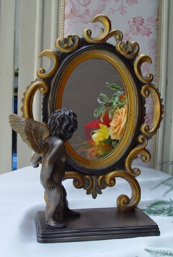 Ein Engel im Spiegel. Ob man ihn sehen kann? Oder sieht man nur ein helles Leuchten? Kann sich ein Engel im Spiegel betrachten? Wie sieht das Spiegelbild eines Engels aus?