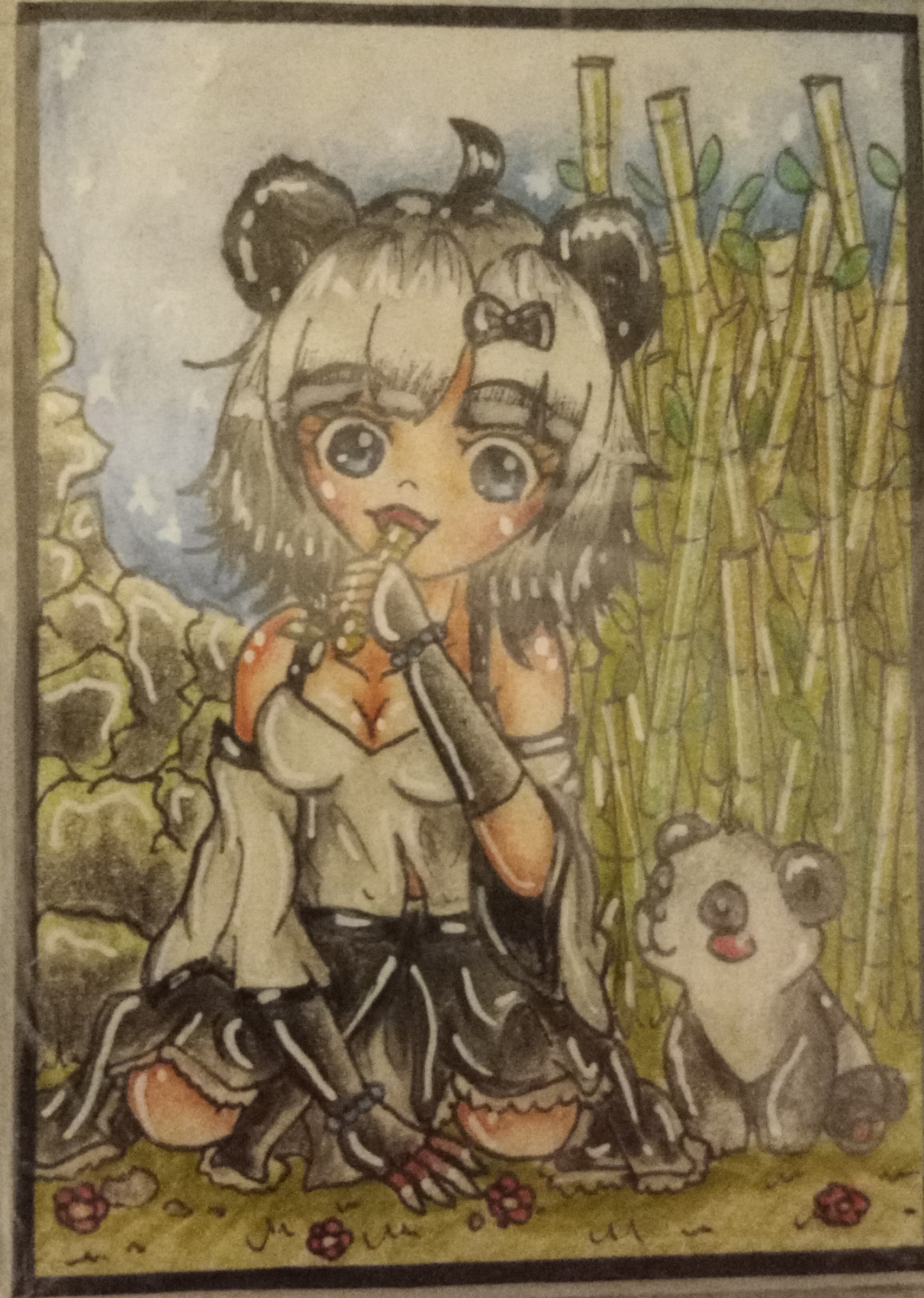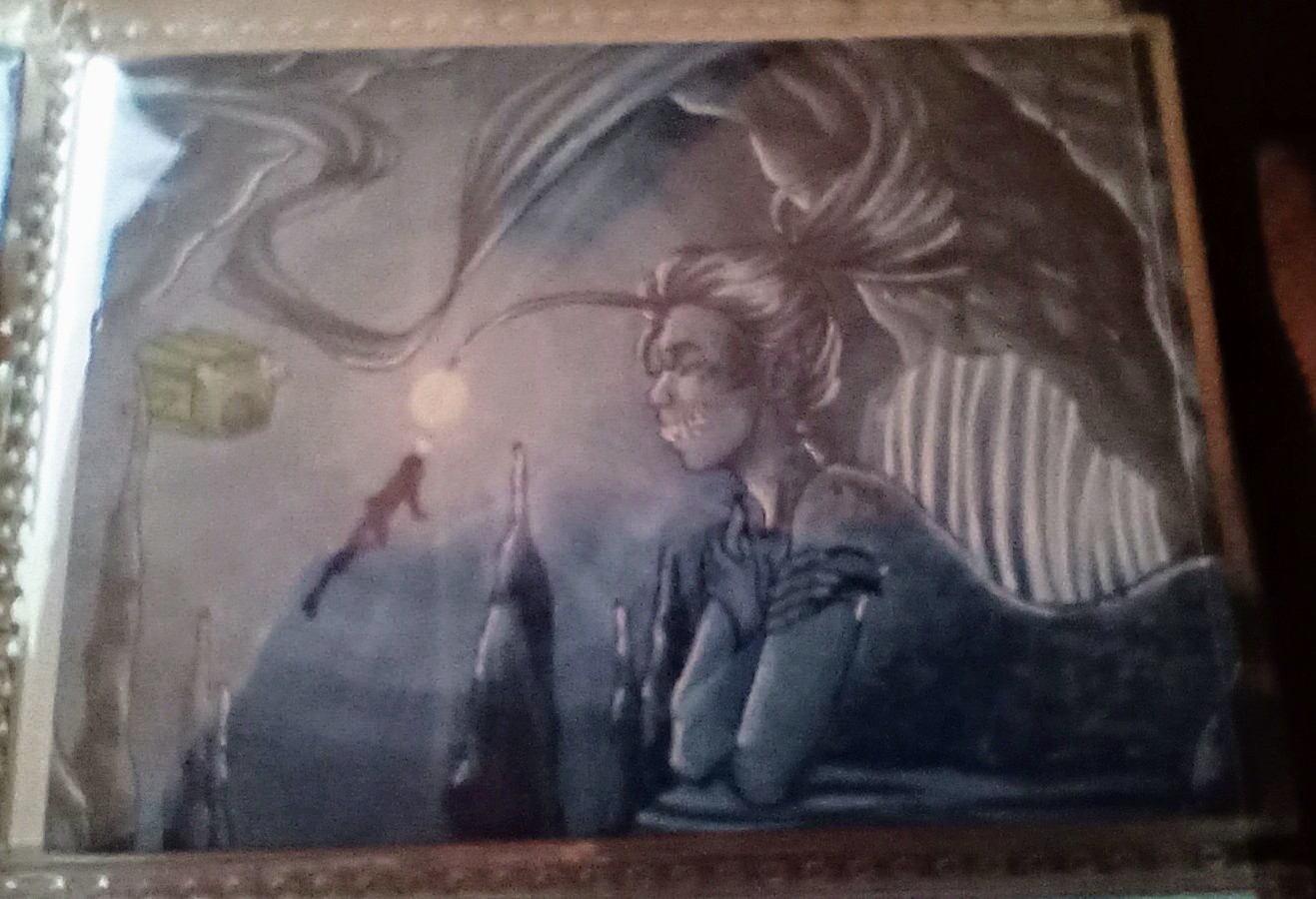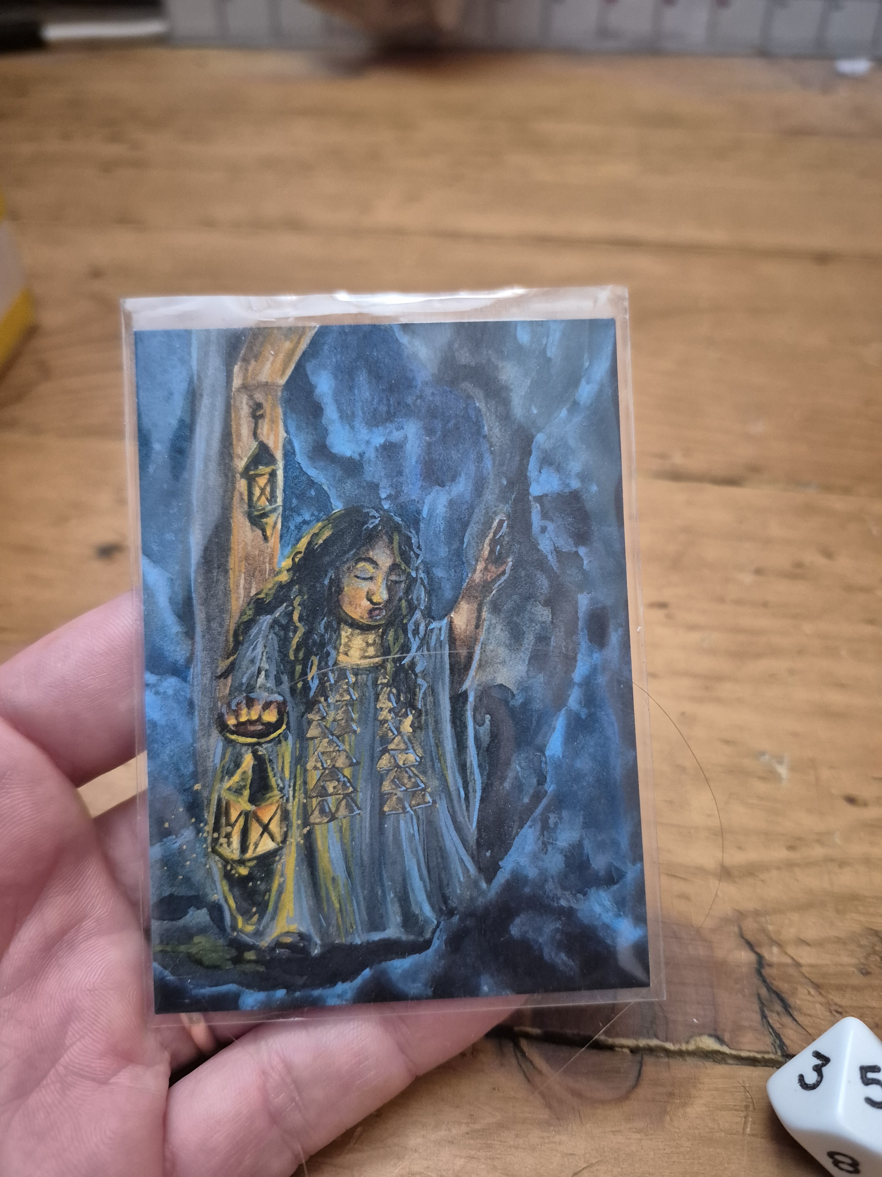 Als erste Karte zog ich aus hunderten die ich besitze, direkt die in meiner Sammlung vielleicht sogar einzige (?) tatsächlich an eine Tarotkarte angelehnte Karte. Vielleicht sollte ich mir demnächst ein paar mehr fröhlichere Karten ertauschen ^^’