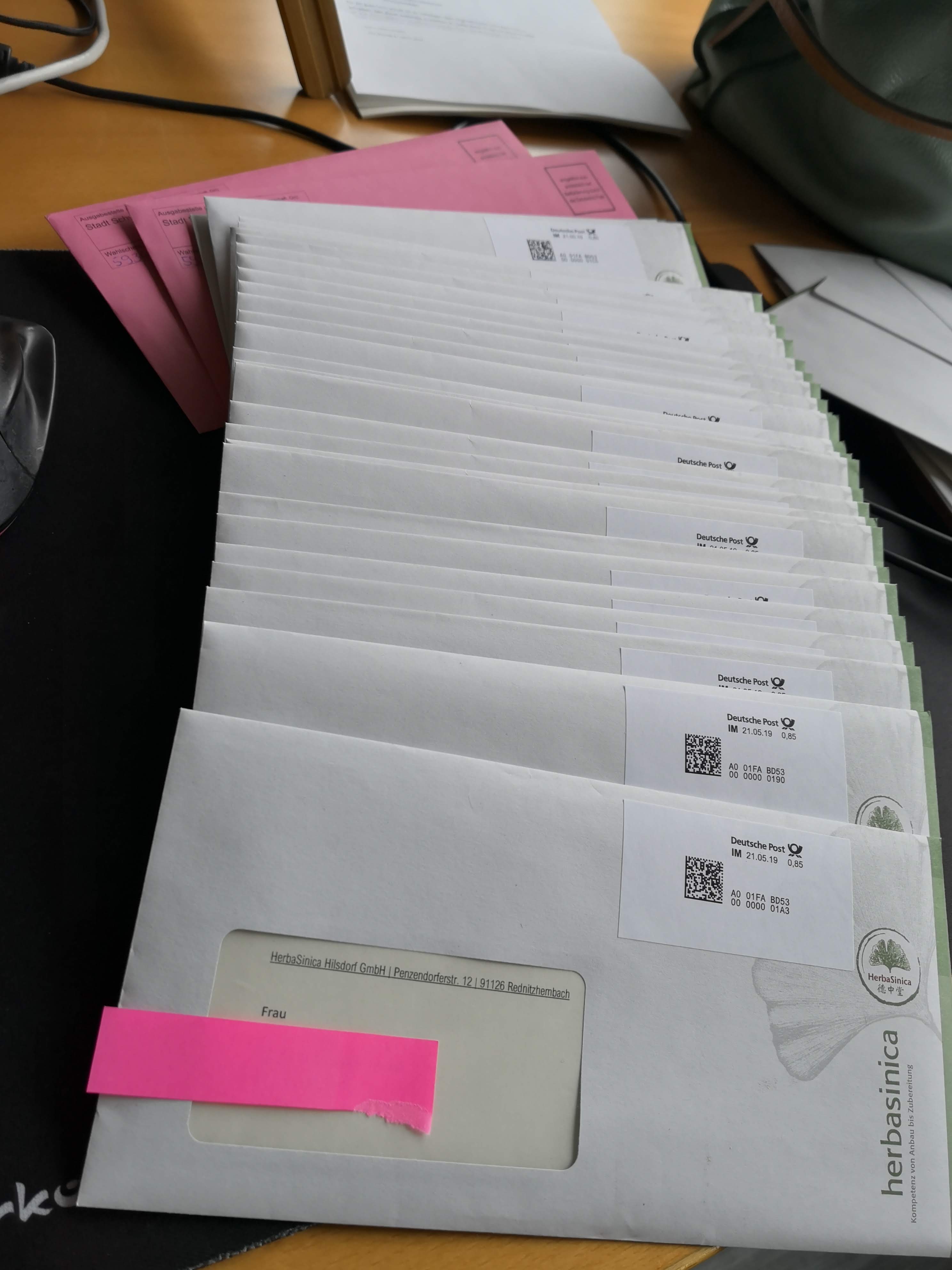 So sehen sie aus, dass ihr die nicht aus Versehen als Spam wegwerft. :'D Absender ist “HerbaSinica Hilsdorf GmbH”
