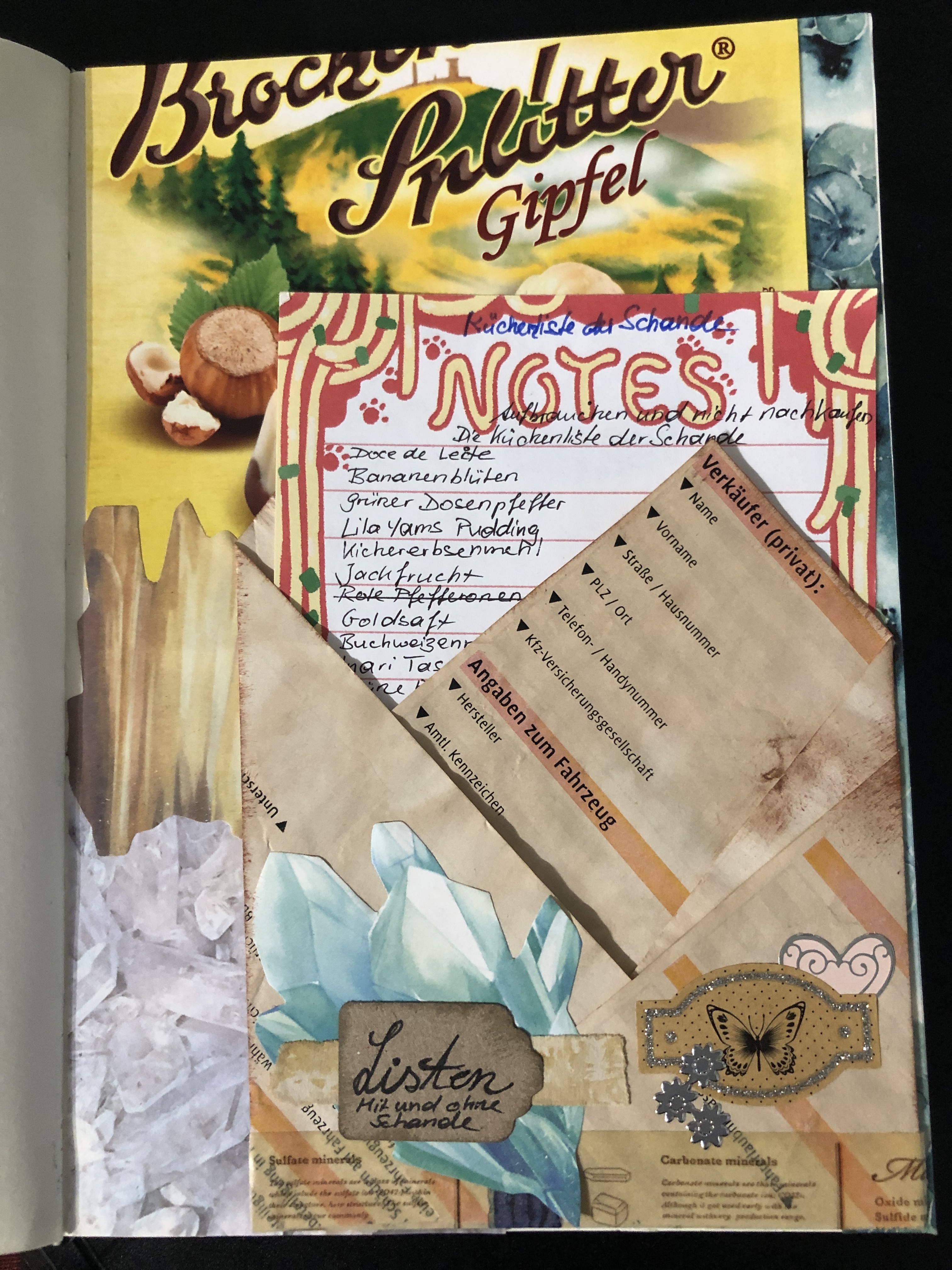 Notitzen, tolle Papiere und Verpackungen und eine sehr dekorierte Umschlagseite.