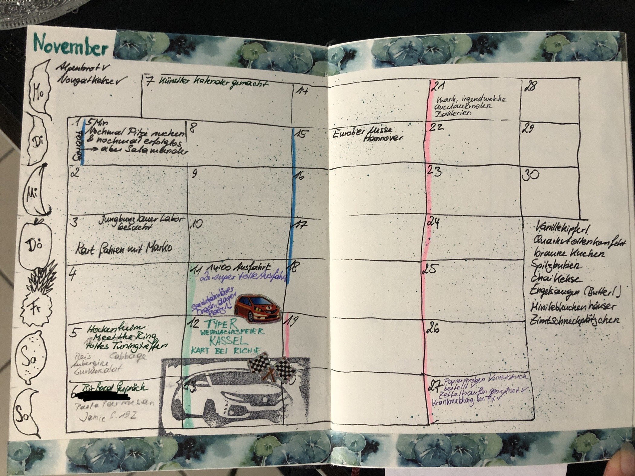 Da ich in meiner Monatsseite sehr viel Privates rein schreibe, was mir persönlich hilft, hab ich jetzt nur eine besonders schlecht geführte Seite für euch ausgewählt.