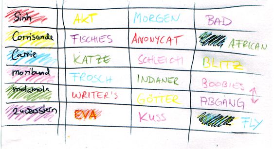 Man sieht, dass ich in der letzten Spalte einmal verrutscht bin und die “Abgang”-Karte von Zuckerstern mit der “Boobies”-Karte von moribund vertauscht habe - deshalb der Pfeil. Auf dem Papier stimmt also alles, aber ich kann mir vorstellen, dass ich Vollidiot beim Packen der Briefe einfach nicht auf diesen Pfeil geachtet habe. Das hätte einfach nicht passieren dürfen und es tut mir unglaublich leid. .__.;;