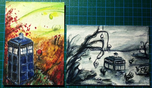 Deine vierte Skizze find ich aber auch mega! oO Ich mag solche Close-ups von der TARDIS irgendwie… also vorallem wenn nur noch der oberen Teil ein wenig ins Bild ragt. Bin gespannt wie sie fertig aussieht. ;)