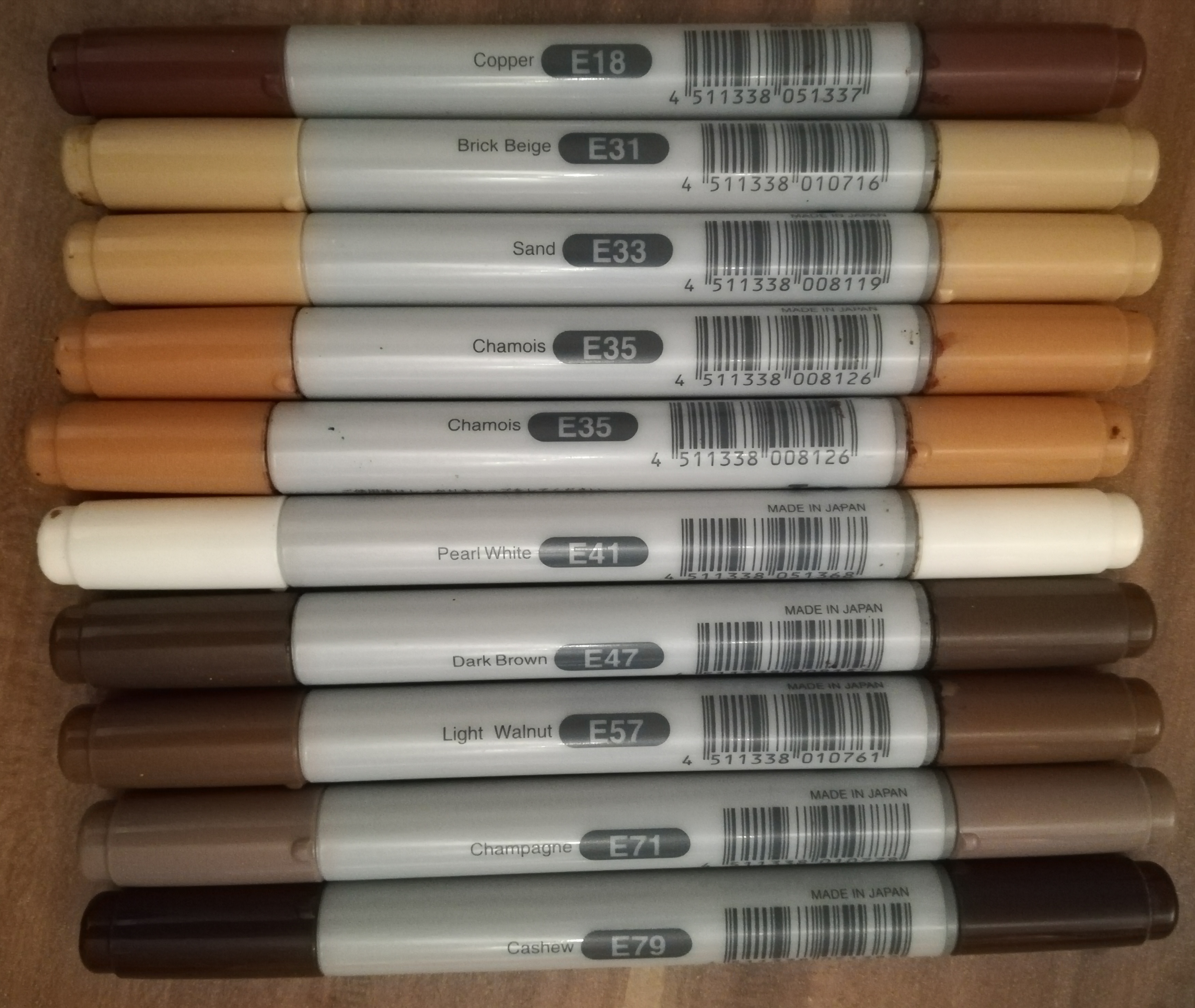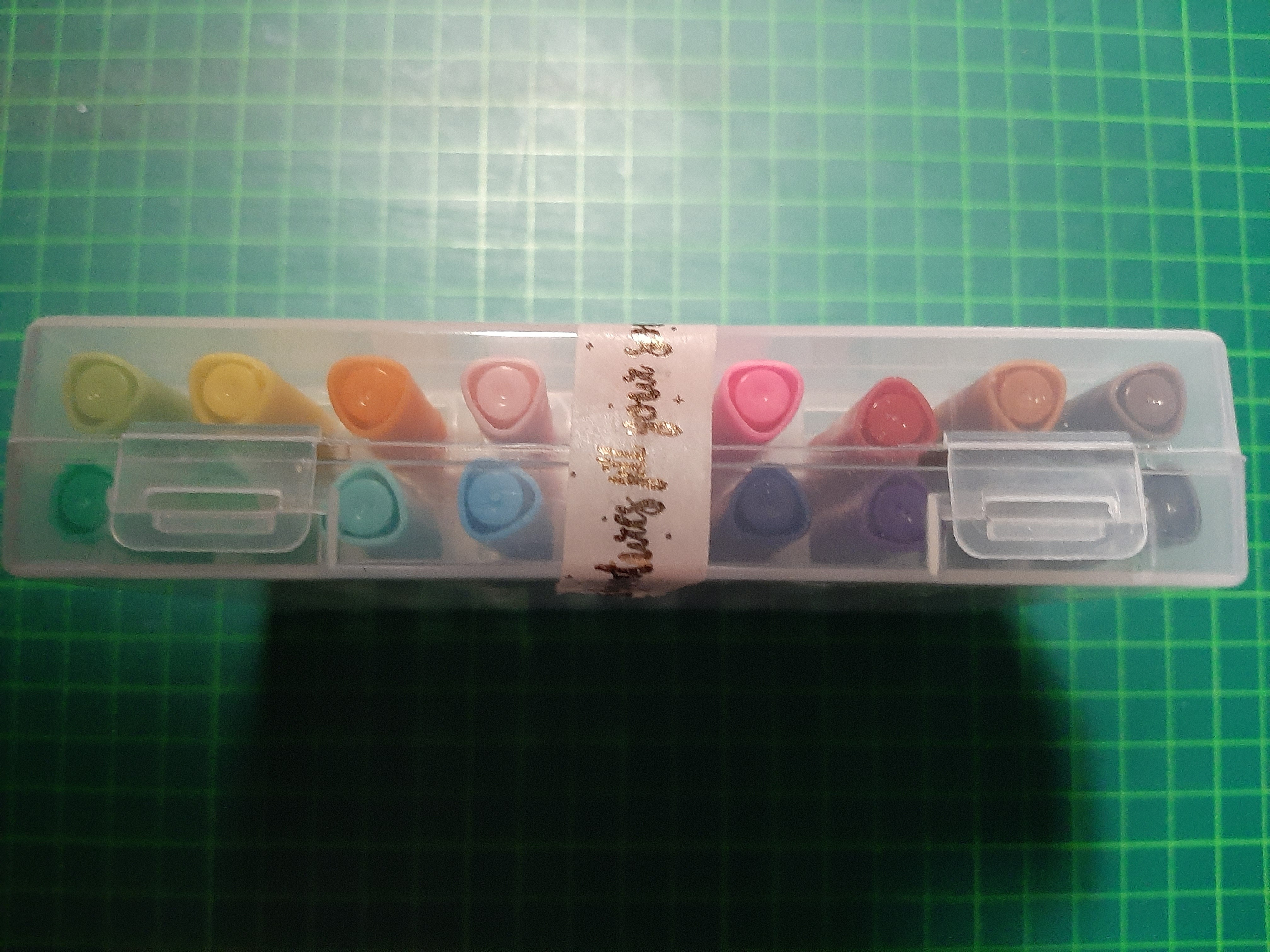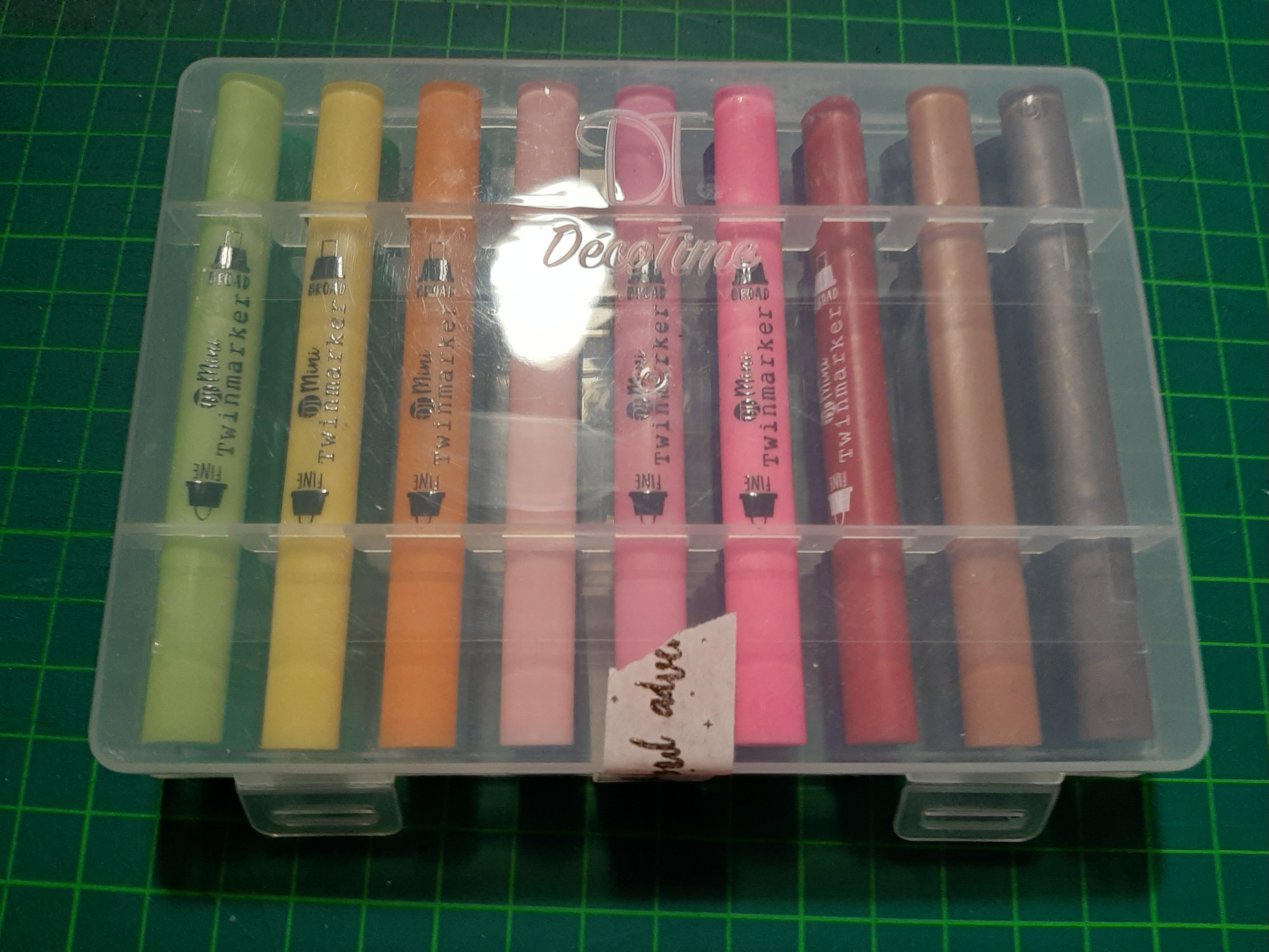 Ich wollte eigentlich nur das Verstausystem, in dem sie kamen, daher habe ich jetzt ganz viele ungenutzte Stifte. Einen Satz habe ich für mich selber behalten, aber benutze sie nicht so oft.