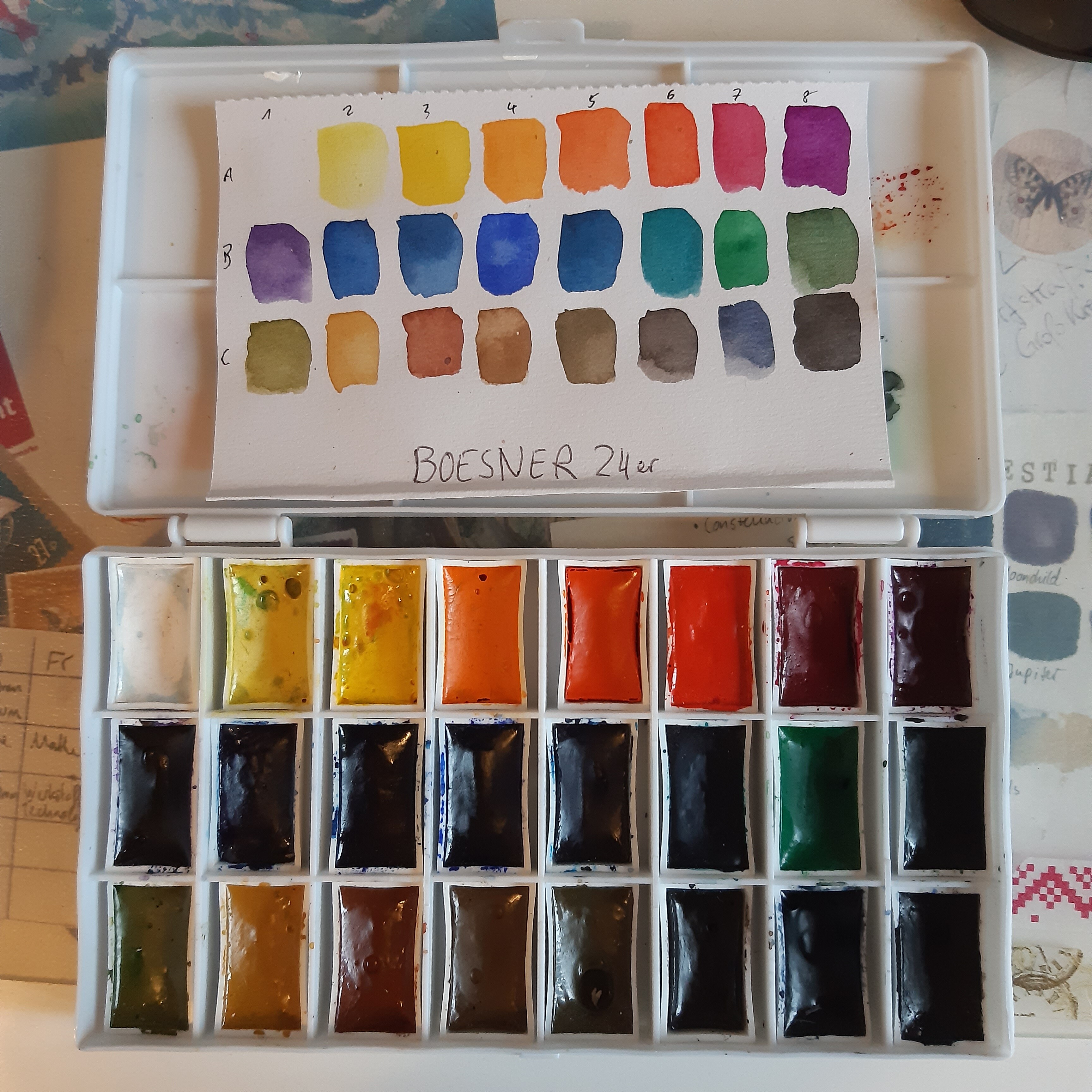 Zudem könnte ich einen großen Aquarell-Leerkasten gebrauchen und würde gerne meine kleine Aquarellnäpfchensammlung erweitern. Vorzugsweise suche ich halbe Näpfchen in Künstlerqualität, gerne auch umgefüllte Tuben.