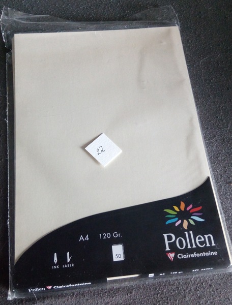 Claire Fontaine Perlmuttpapier mit Gelbstich. Das gedruckte Bild hat dann einen leichten Sepiaeffekt.