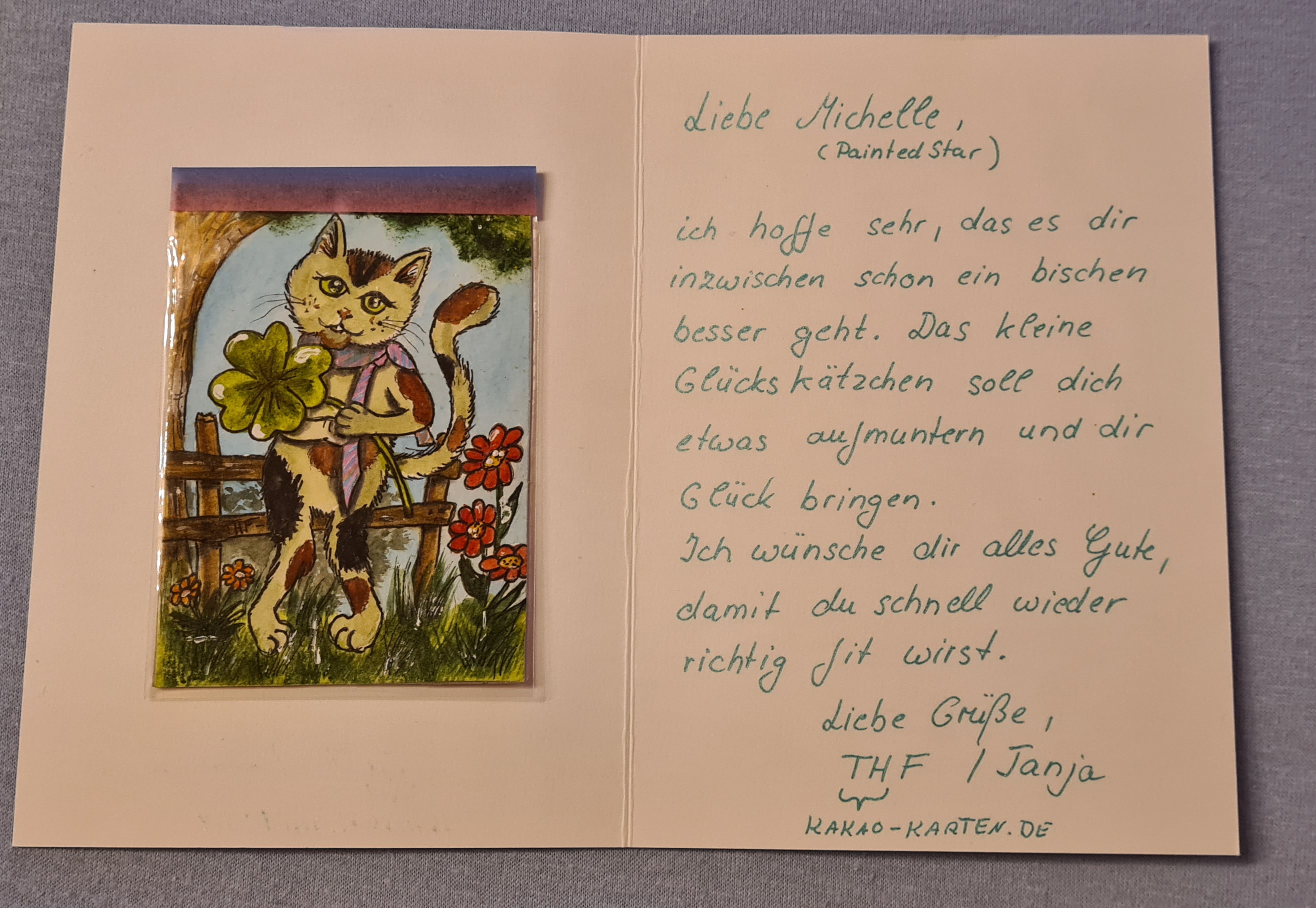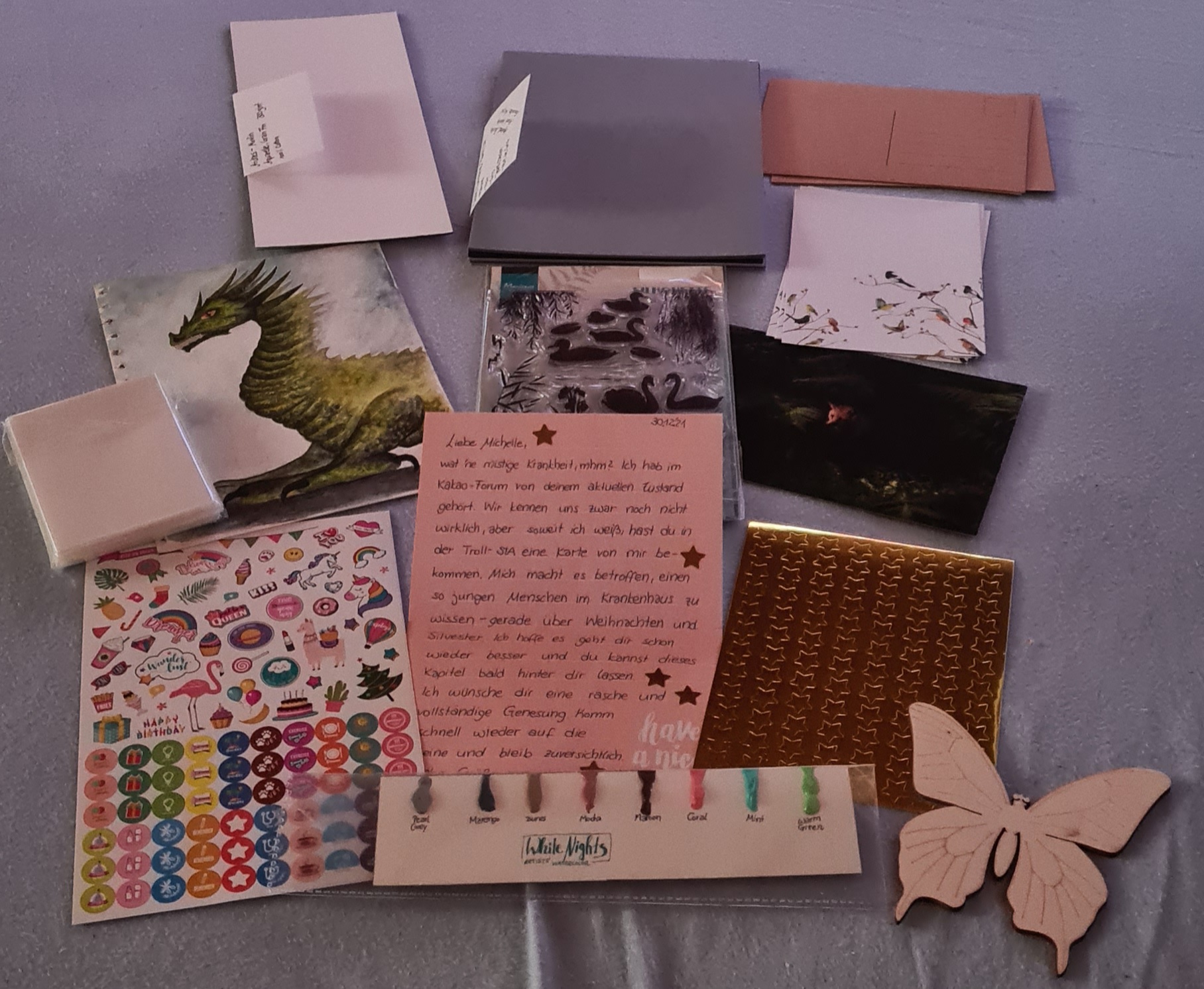 Danke nochmals sehr viel mal für die päckchen die mir im Krankenhaus/zu hause dann viel freude und einige lächler bescheert haben