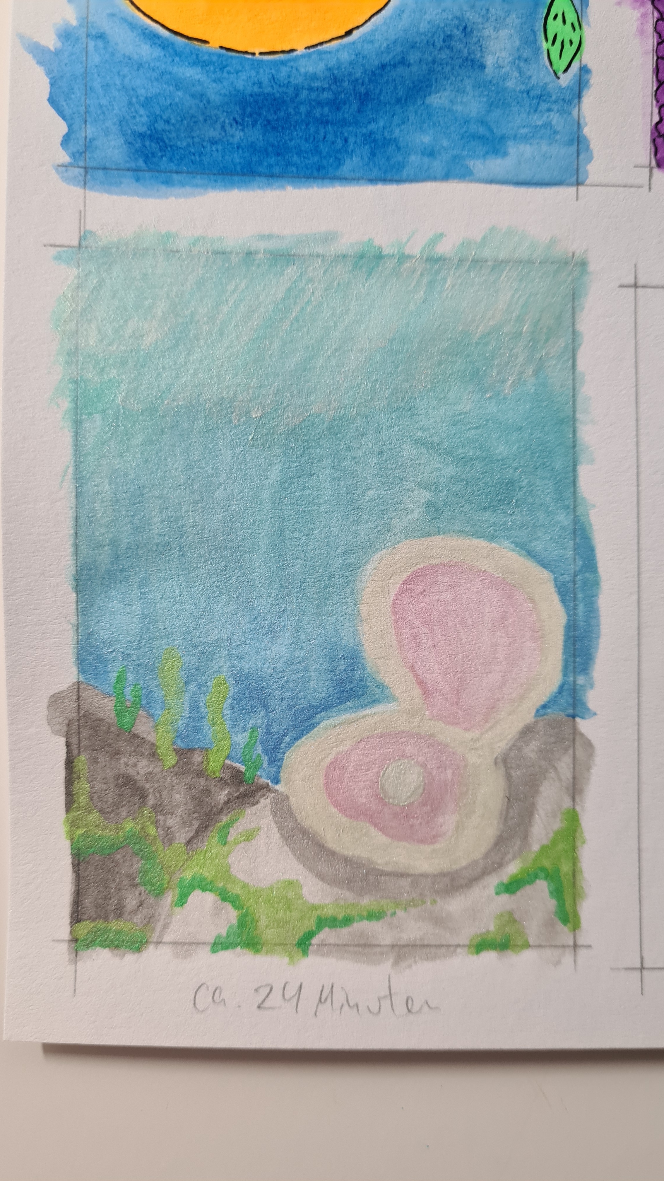 @Rasmodea Bei dem Kürbis könnte ich mir angedeutet sich kringelnde Ranken vorstellen im HG, nichts aufwändiges. Und bei der Muschel würde ich noch mit Weiß ein paar Blubberblasen malen, damit das Unterwasserfeeling besser ersichtlich ist. Die unteren beiden find ich so wie sie sind sehr gut gelungen. Ich mag die Farben von der Dritten vor allem. <3
