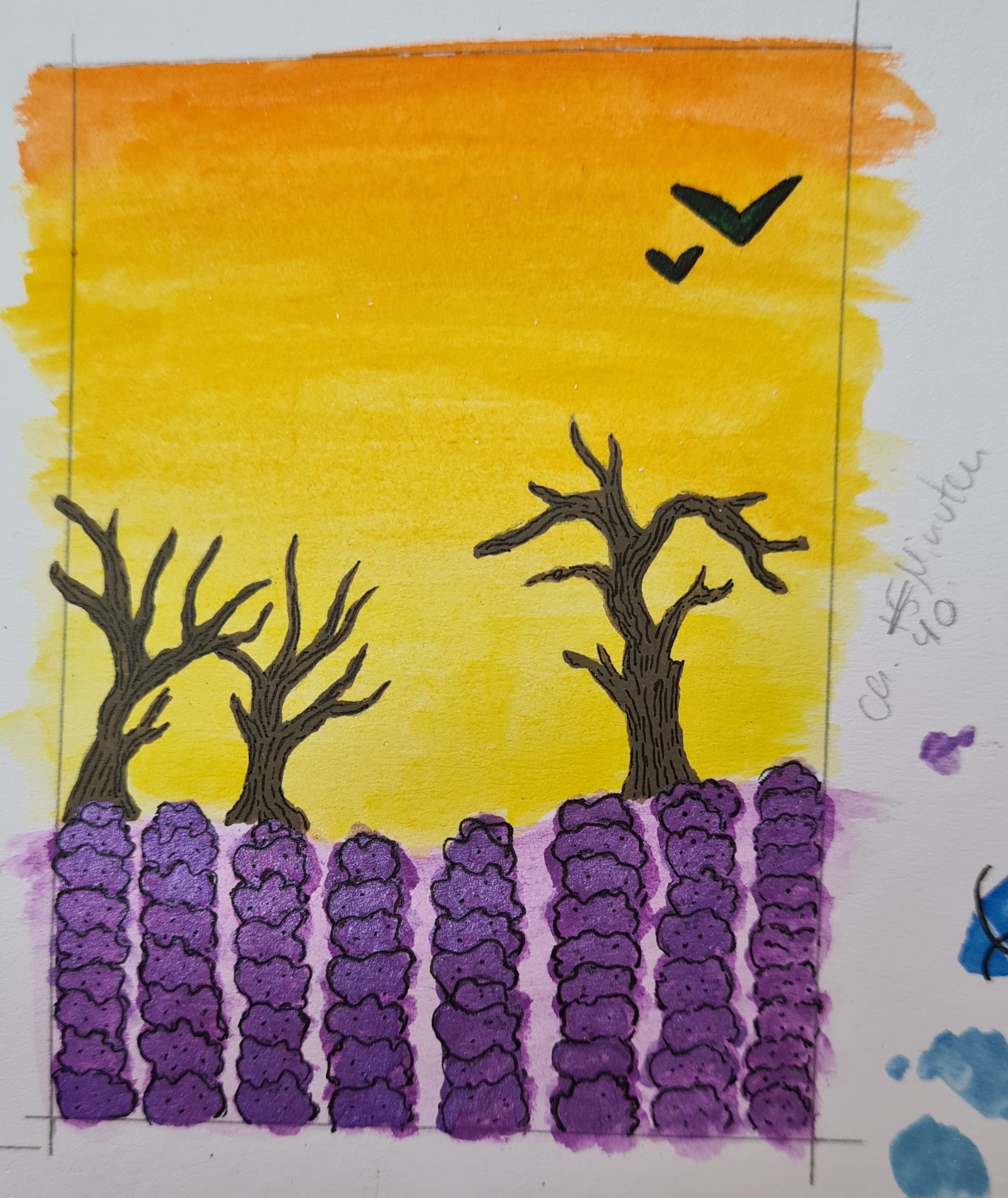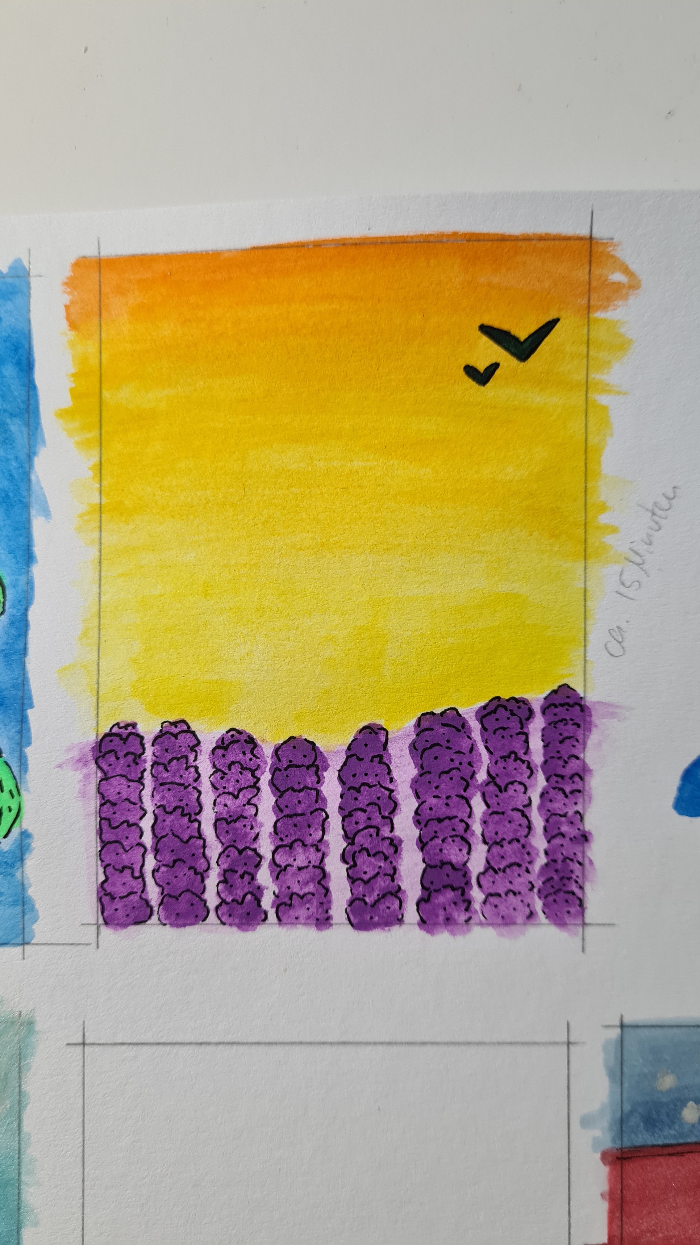 Bei dem Feld könntest du noch mit schwarzer Farbe eine Kontur von Bäumen hinter das Feld dazu zeichnen :D
