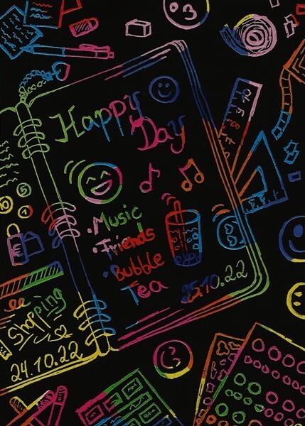 Stift trifft auf Kratzpapier. ^-^ Soll ein Journal mit allerlei Utensilien darstellen.