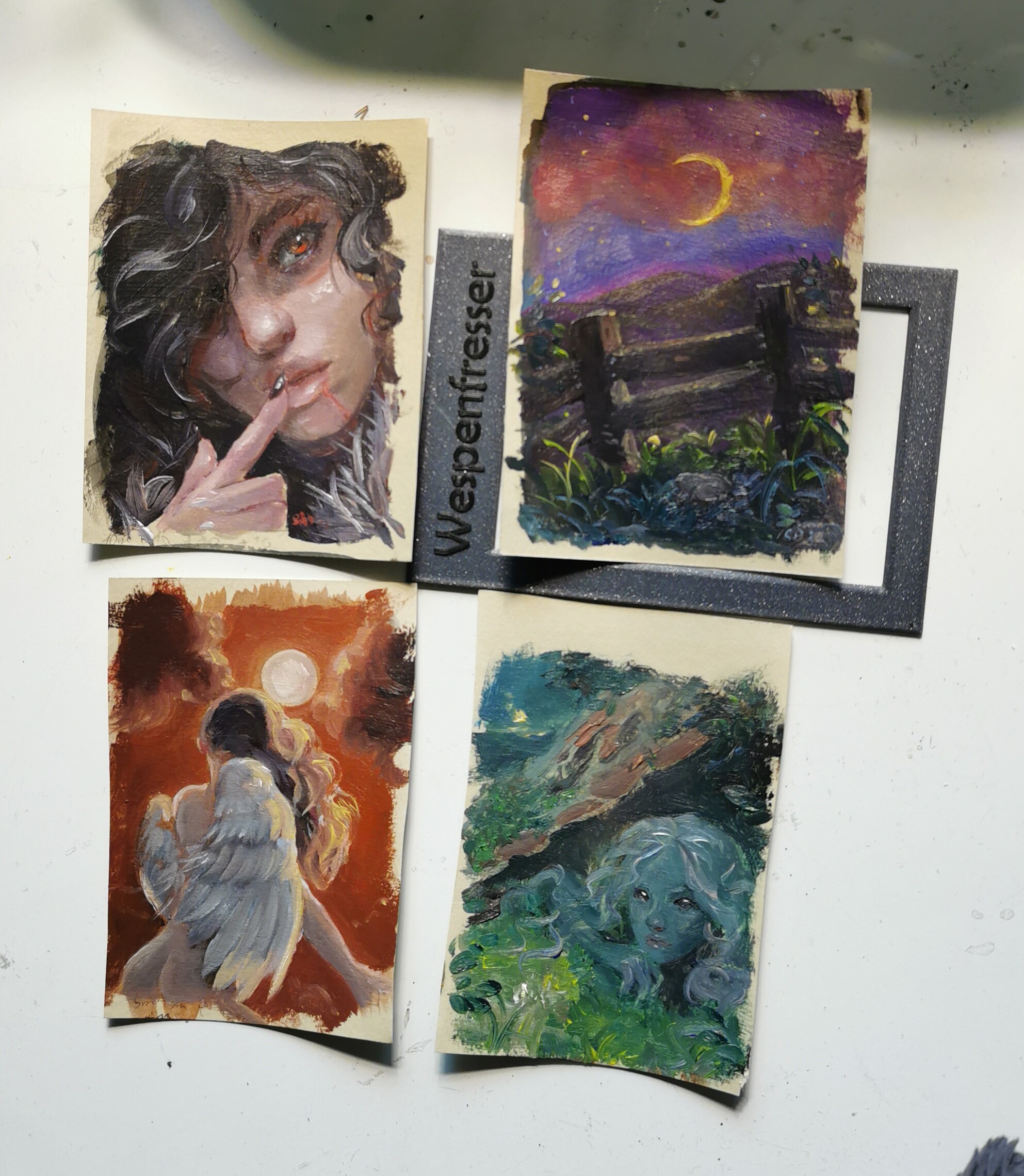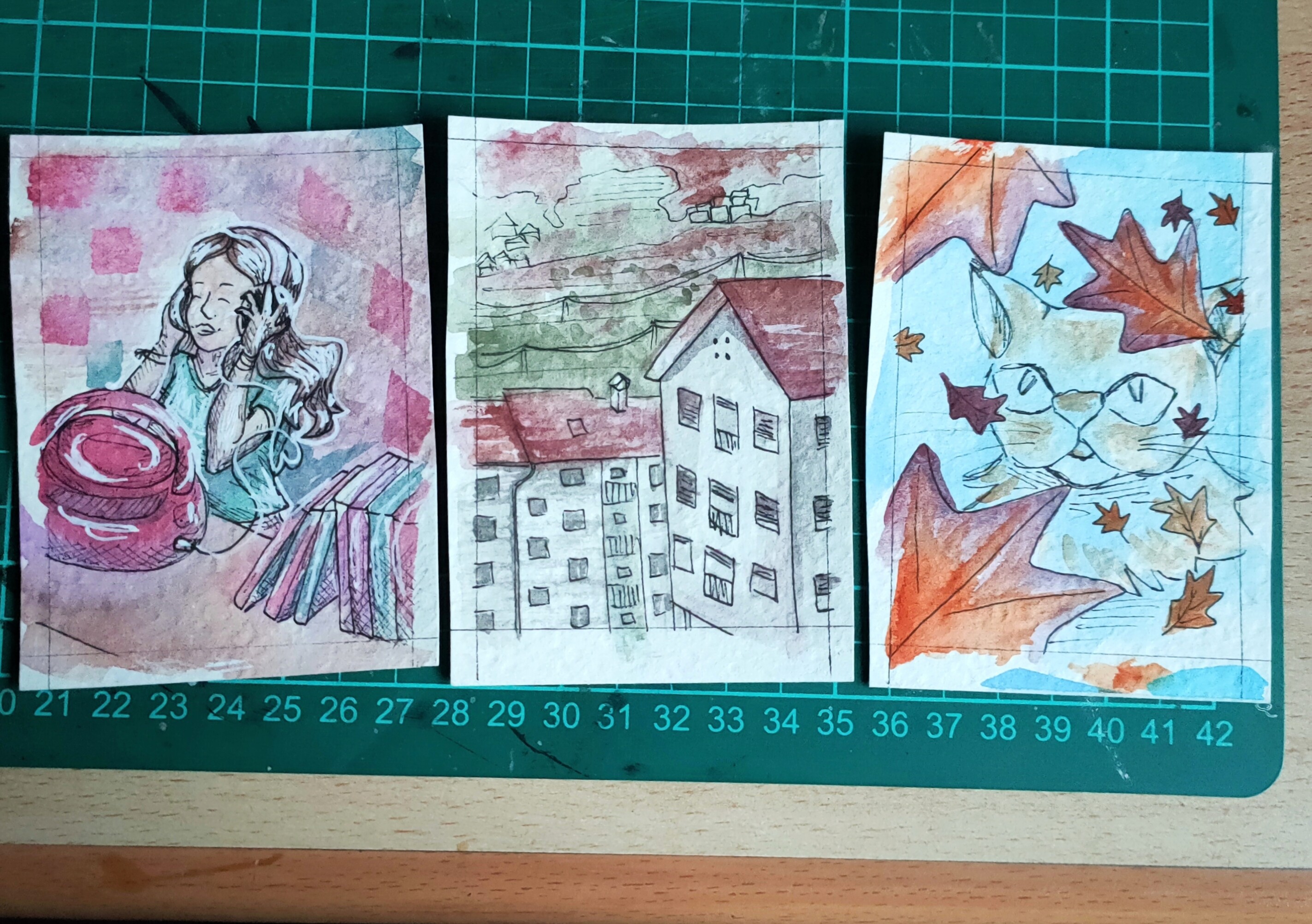 … und 8 weitere Karten. Also 9 Stück bis jetzt. Aber bin noch bei 10 Minuten pro Motiv, muss schneller werden :D … und zwei Karten davon sind Mist, zwei sind ok geworden und 5 seh ich als einreichungswürdig an. Aber da ich ein fauler Mensch bin und es sicher noch mehr werden, warte ich noch mit Foto machen.