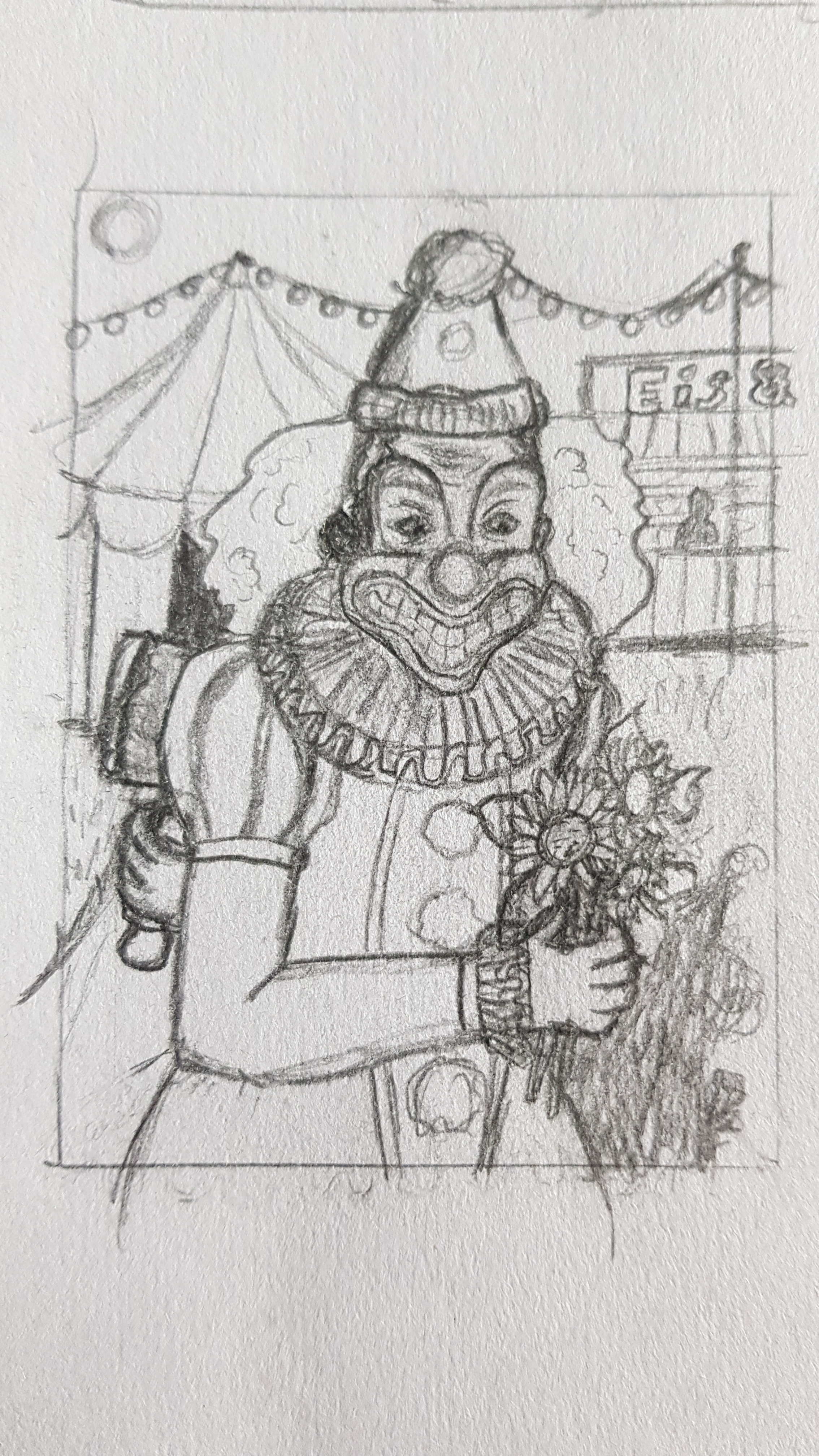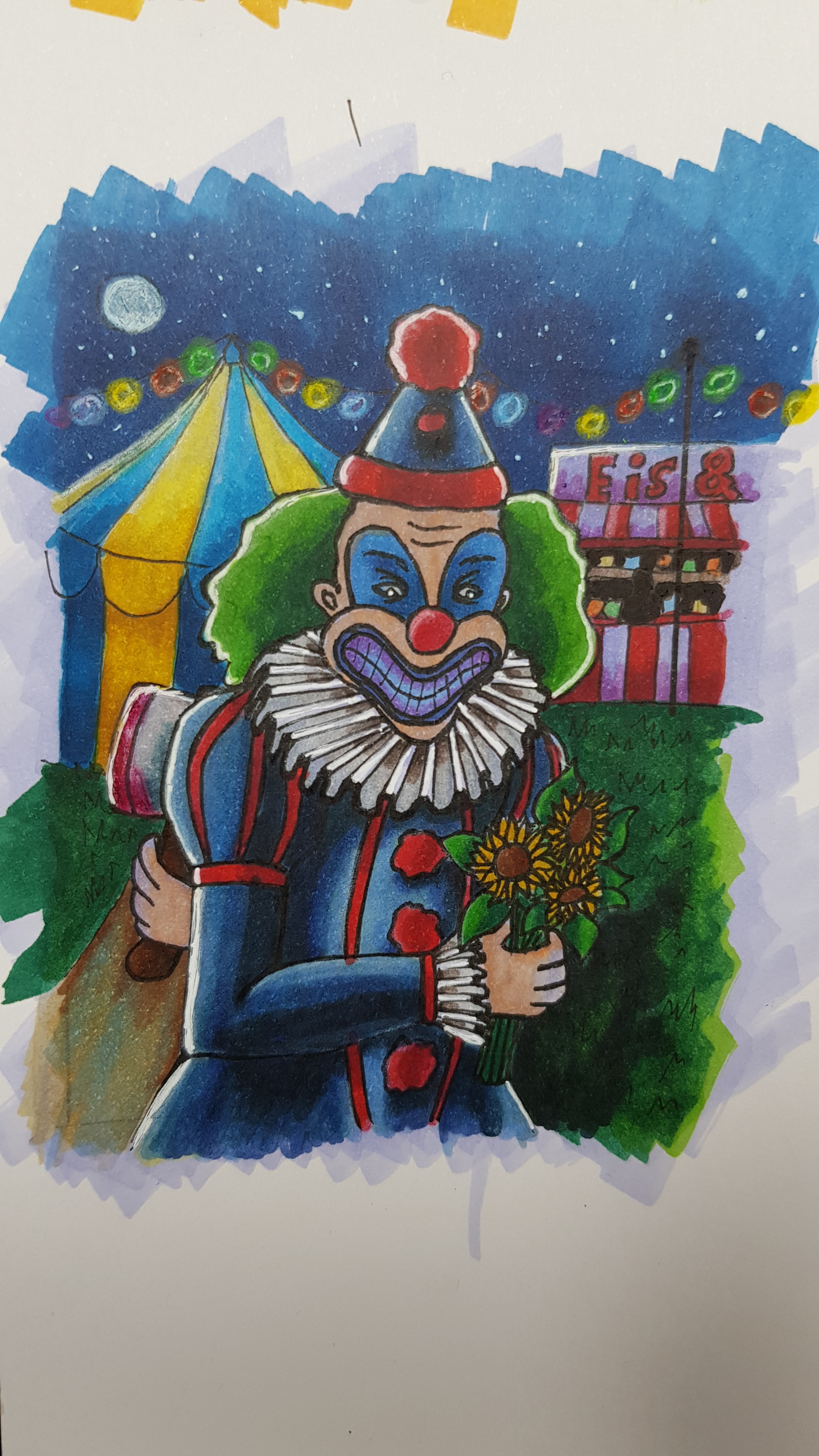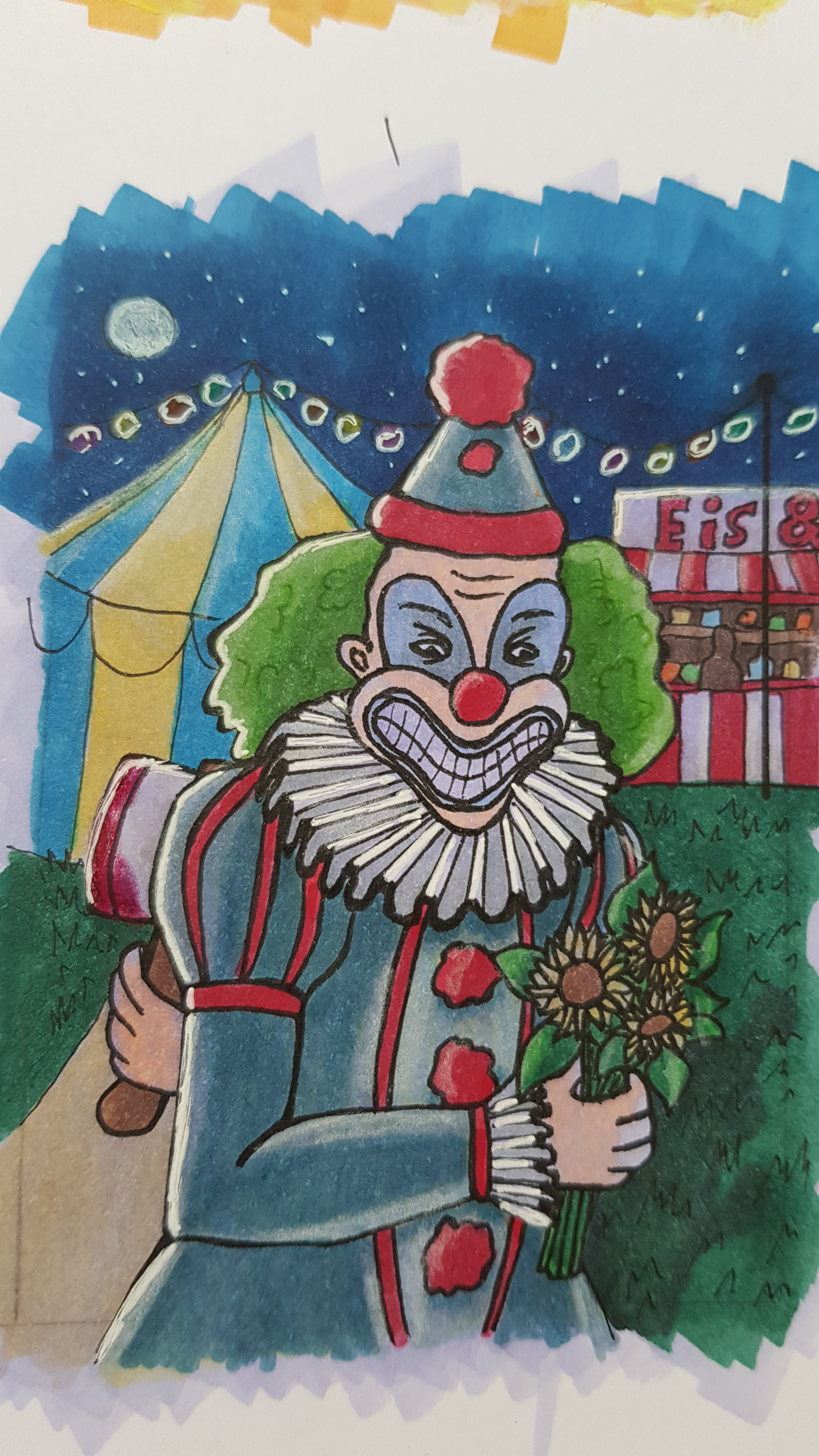 Oh Gott, die Axt (oder Hammer) hatte ich auf der Skizze gar nicht gesehen x’D Geht klar so, ich würde eventuell die Schaaten noch weiter vertiefen. Traut euch da ruhig. Aber schon eine schaurig schöne Nachstimmung. Hilfe.