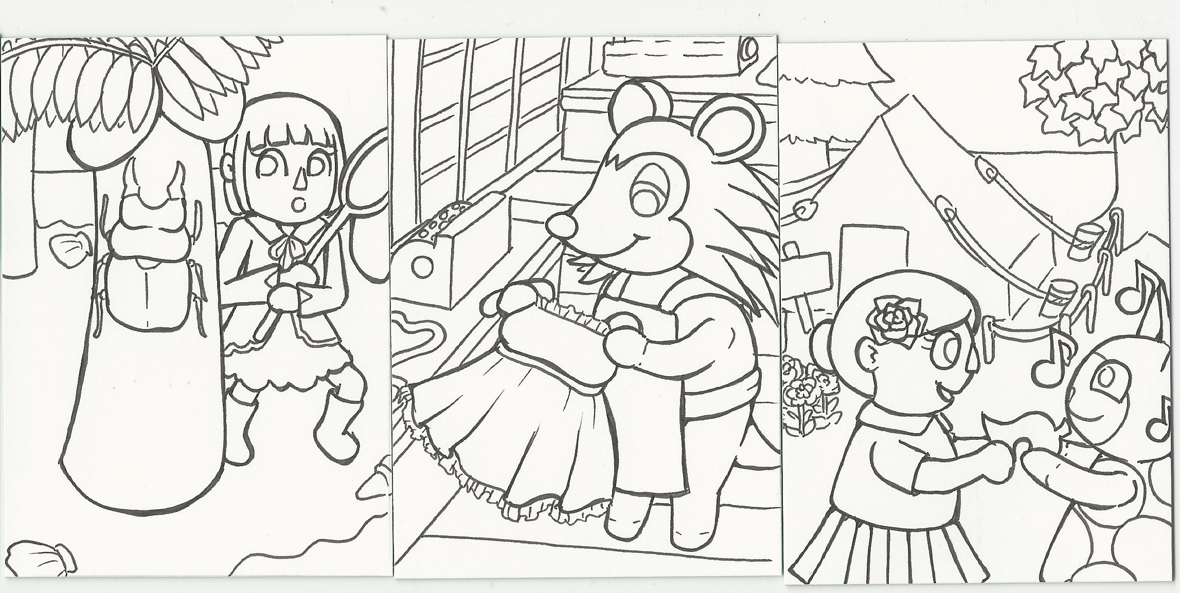 Hier nochmal ein Zwischenstand, bevor ich mich an die Farben mache. Ich habe außerdem das dritte Motiv nochmal geändert, war nicht so ganz glücklich mit der Aufteilung. Hoffe, das passt so trotzdem!