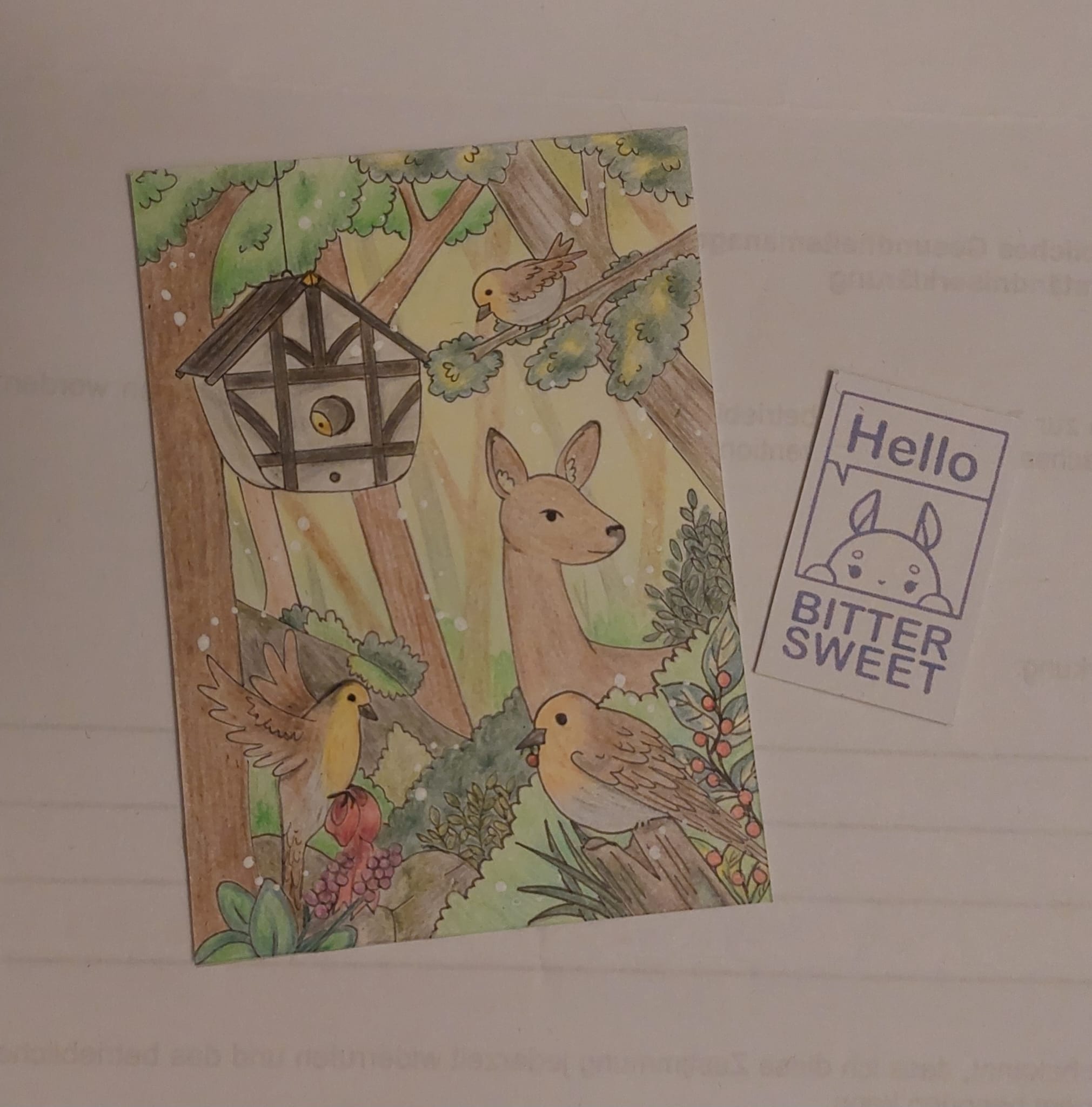 Und für meine dritte Karte hab ich jetzt doch ne andere Skizze gemacht- der Hintergrund bei dem Fuchs hat mich ein wenig in den Wahnsinn getrieben🥲