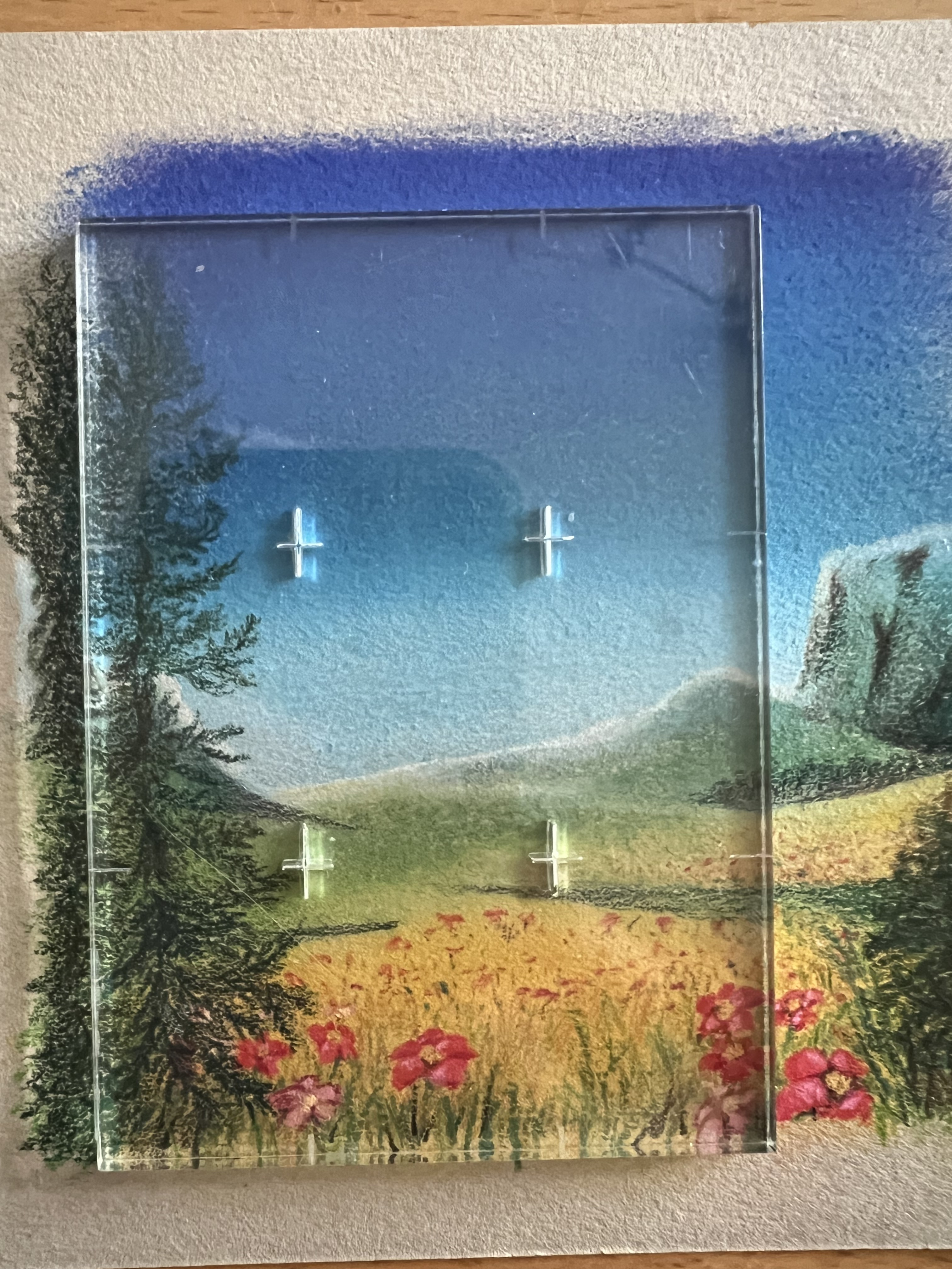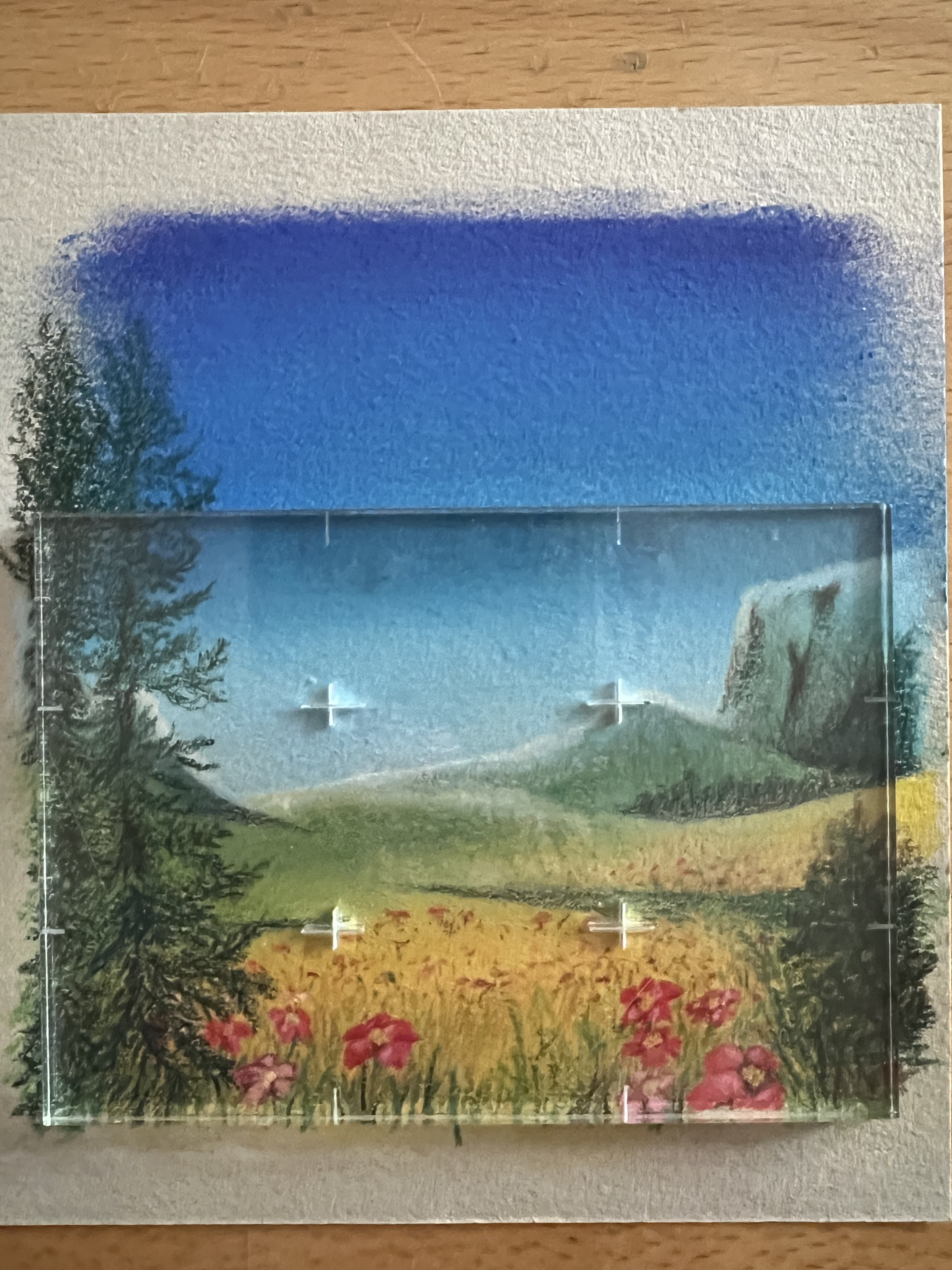 Die vorherige Pastellkarte habe ich verworfen. Sie bleibt ungeschnitten und wird anderweitig Verwendung finden.