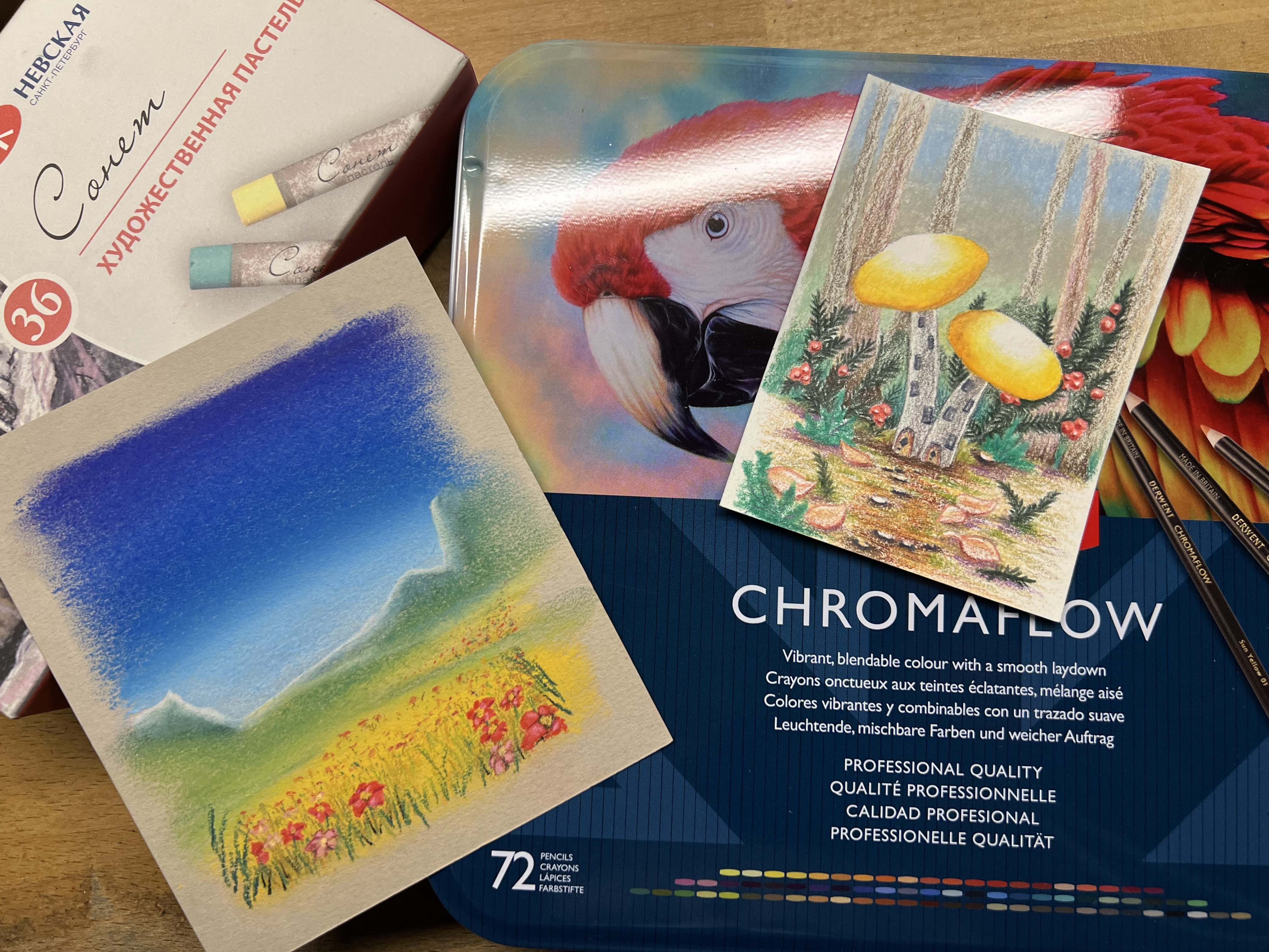 Die Pilze unten rechts sind mit den neuen Pastellkreiden entstanden. War sehr spannend so detailreich mit so großen Kreiden zu arbeiten.