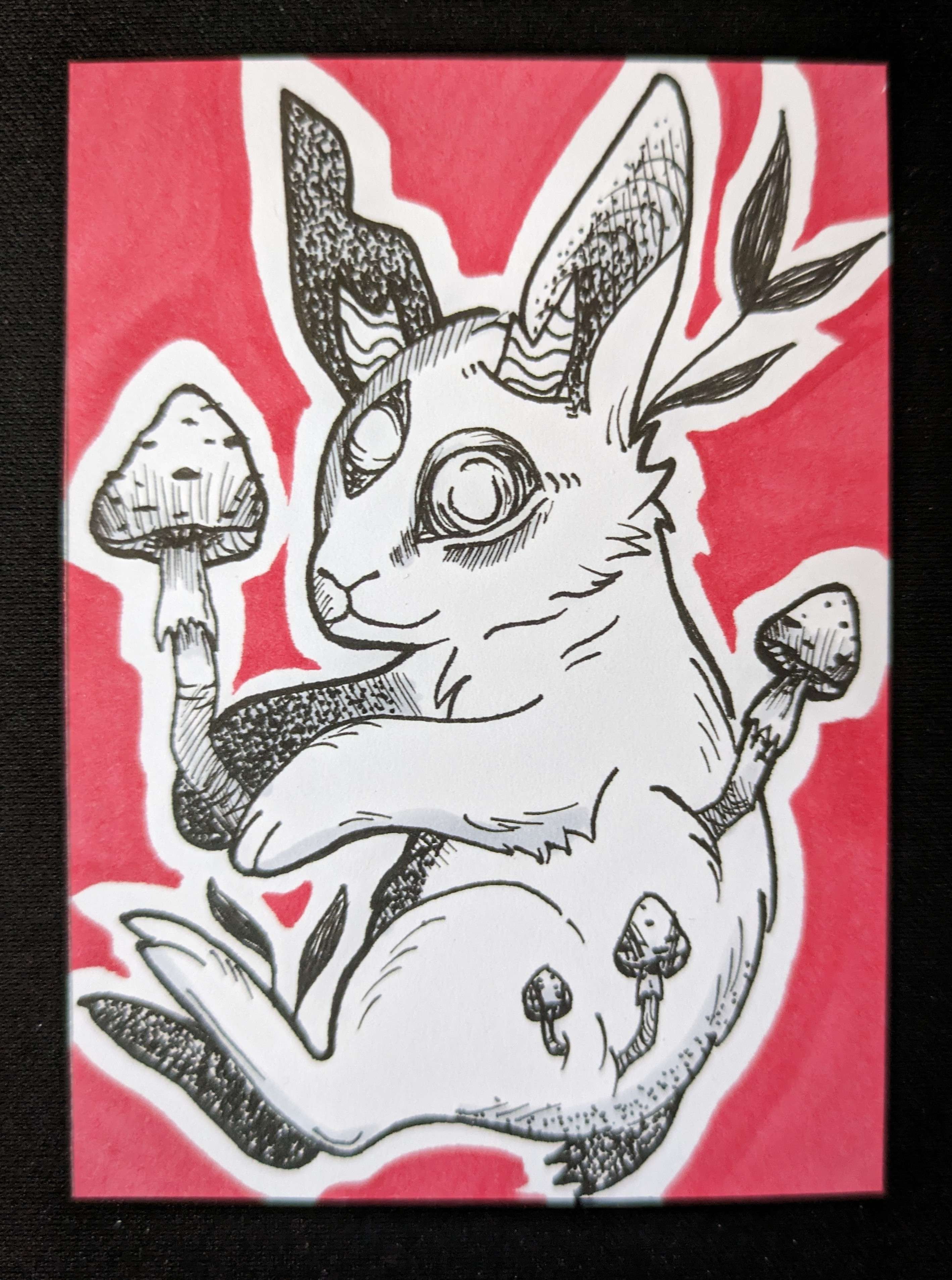 Ich finde das Pilzkaninchen richtig cool :D Hast du mal mit den Gedanken gespielt, das Auge noch einzufärben? Wäre sicherlich auch schick, quasi als “Eyecatcher” :D