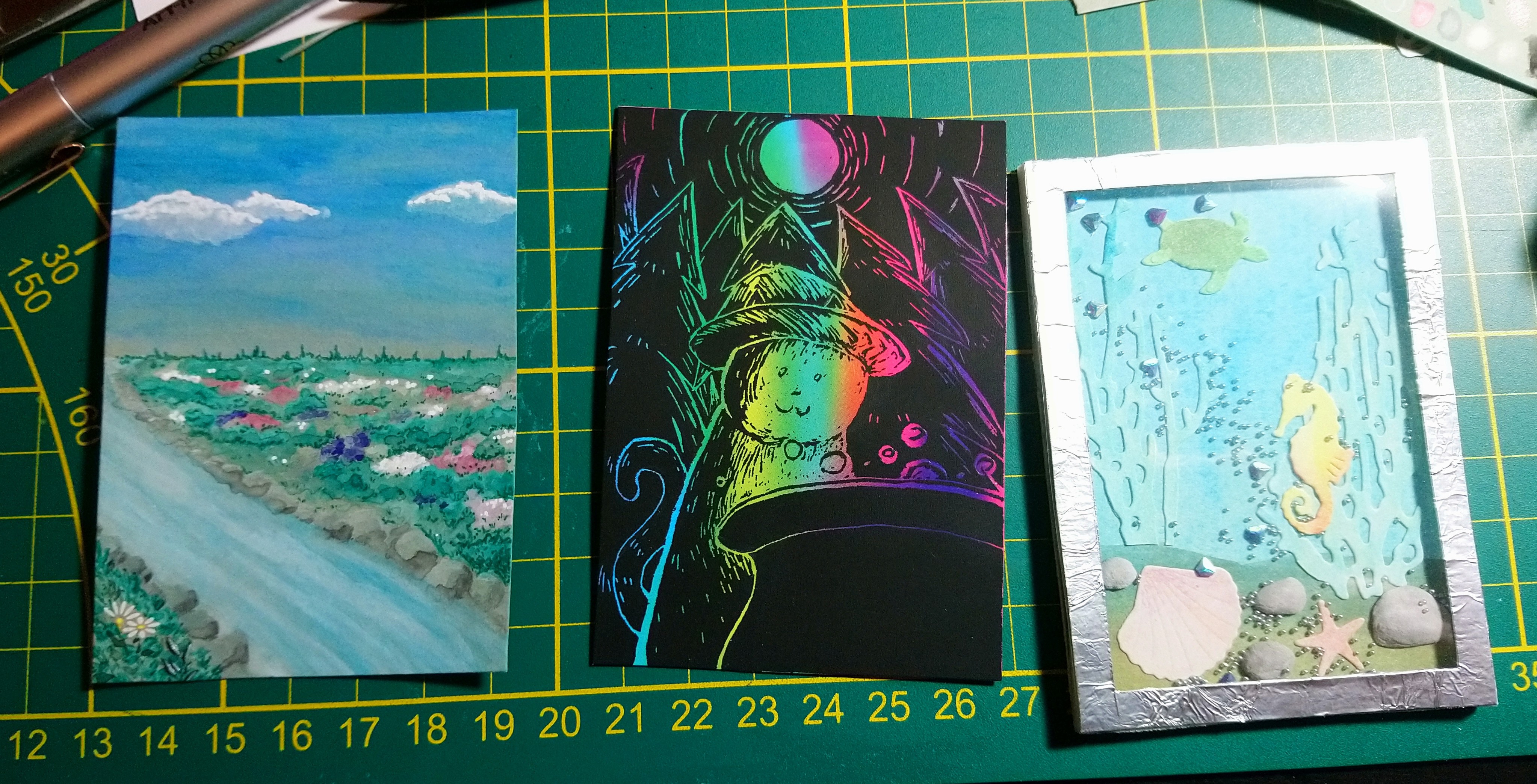 Meine Karten hängen nu auch in der Freischalte-Warteschleife - sorry, dass es so auf den letzten Drücker ist, ich habe laaaange keine aufwändigen Blümschänkarten mehr gemalt, so dass sich das etwas gezogen hat. Sollte ein Motiv davon nicht in Ordnung sein, würde ich ggf. mit zwei Karten teilnehmen.