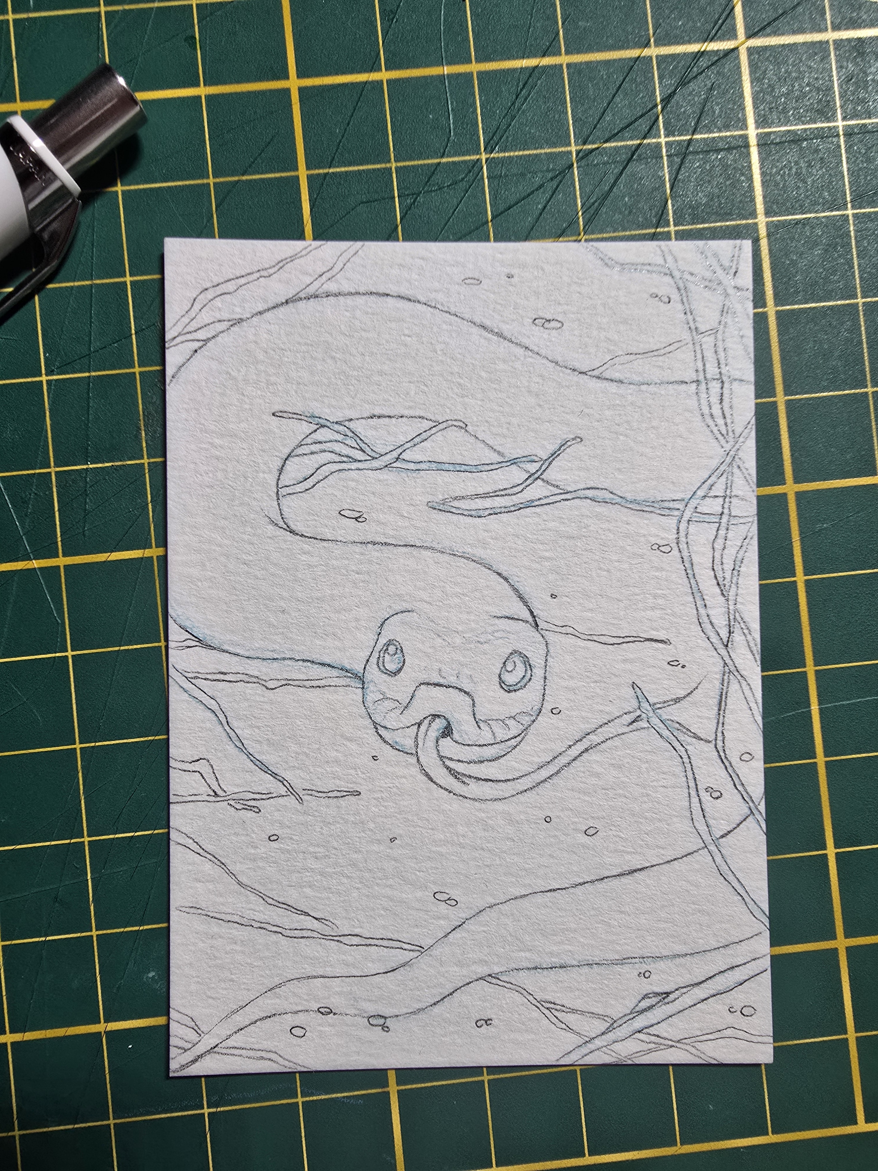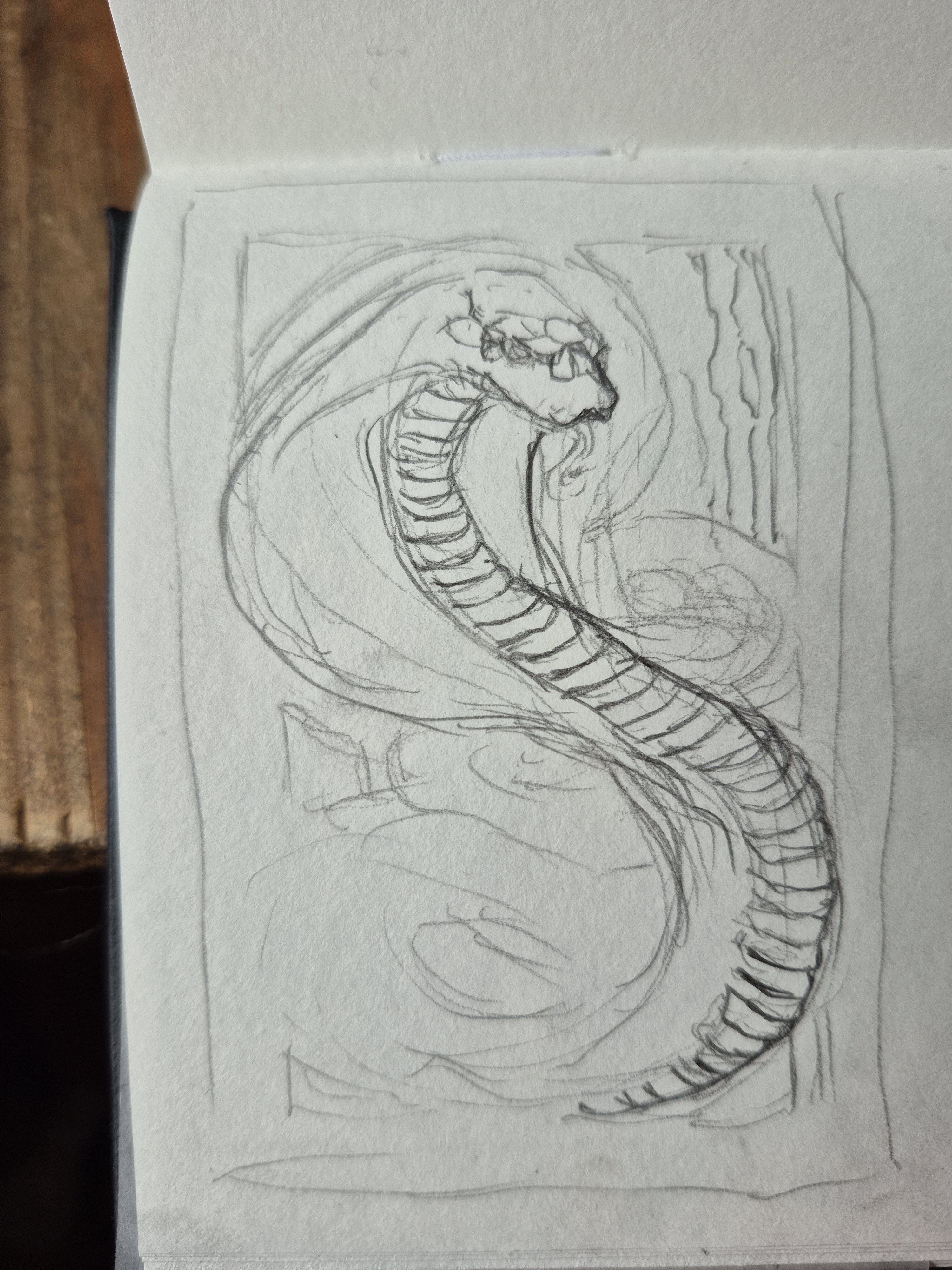 Ich hab tatsächlich auch schon mal angefangen etwas zu skizzieren, einfach, weil ich Schlangen so toll finde. Hab leider noch keine Ahnung, ob ich die Karte in irgendeiner Form rechtzeitig fertig bekomme, aber vielleicht inspiriert die Zeichnung ja wenigstens wen: