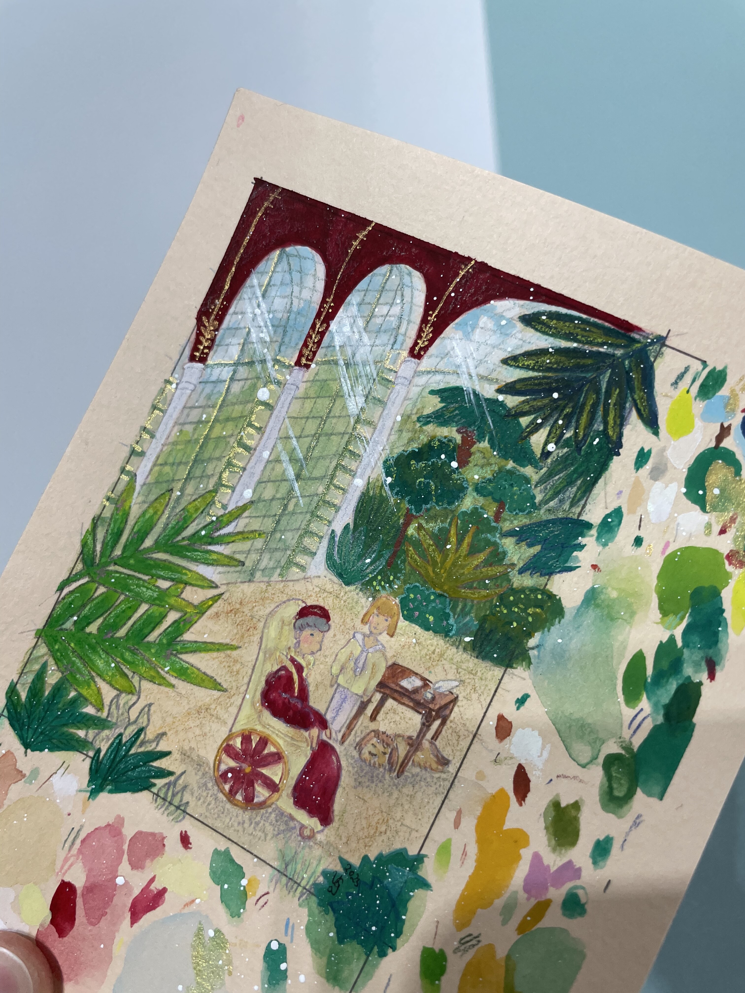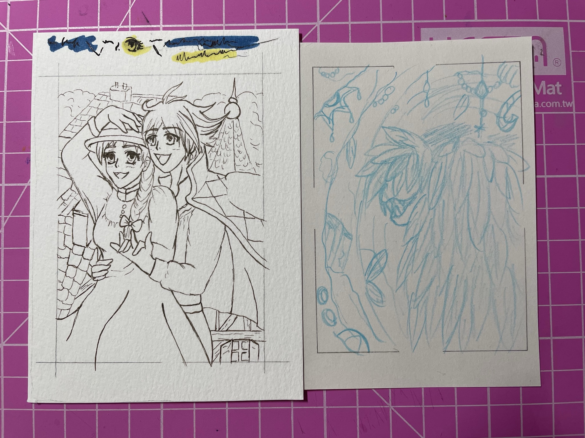Ich werde sehr wahrscheinlich nur 2 Karten einreichen, aber die zwei Karten werde ich pünktlich fertig haben. Die ersten zwei Schichten Farbe sind schon drauf, ich muss mich nur noch an die Details setzen :)