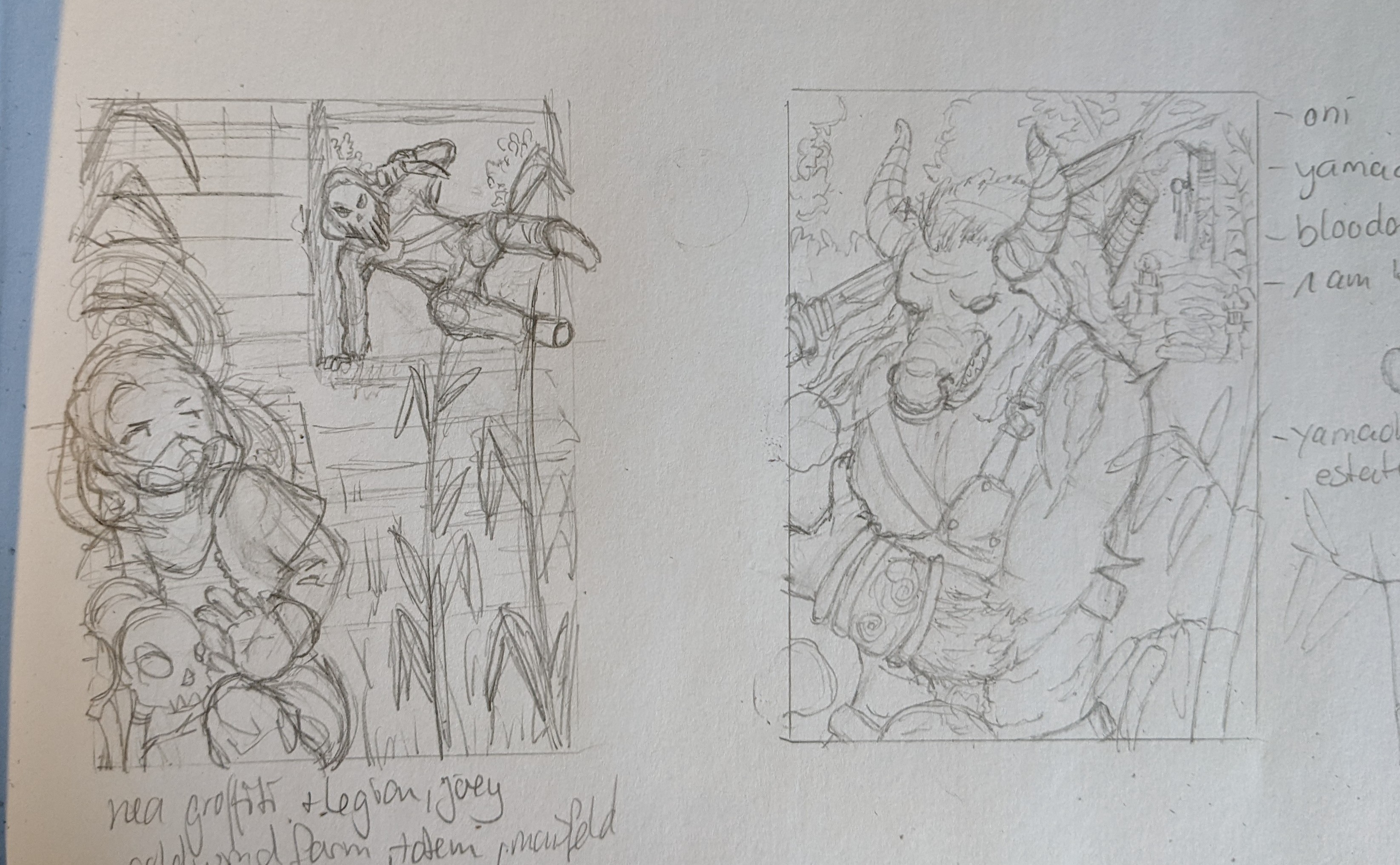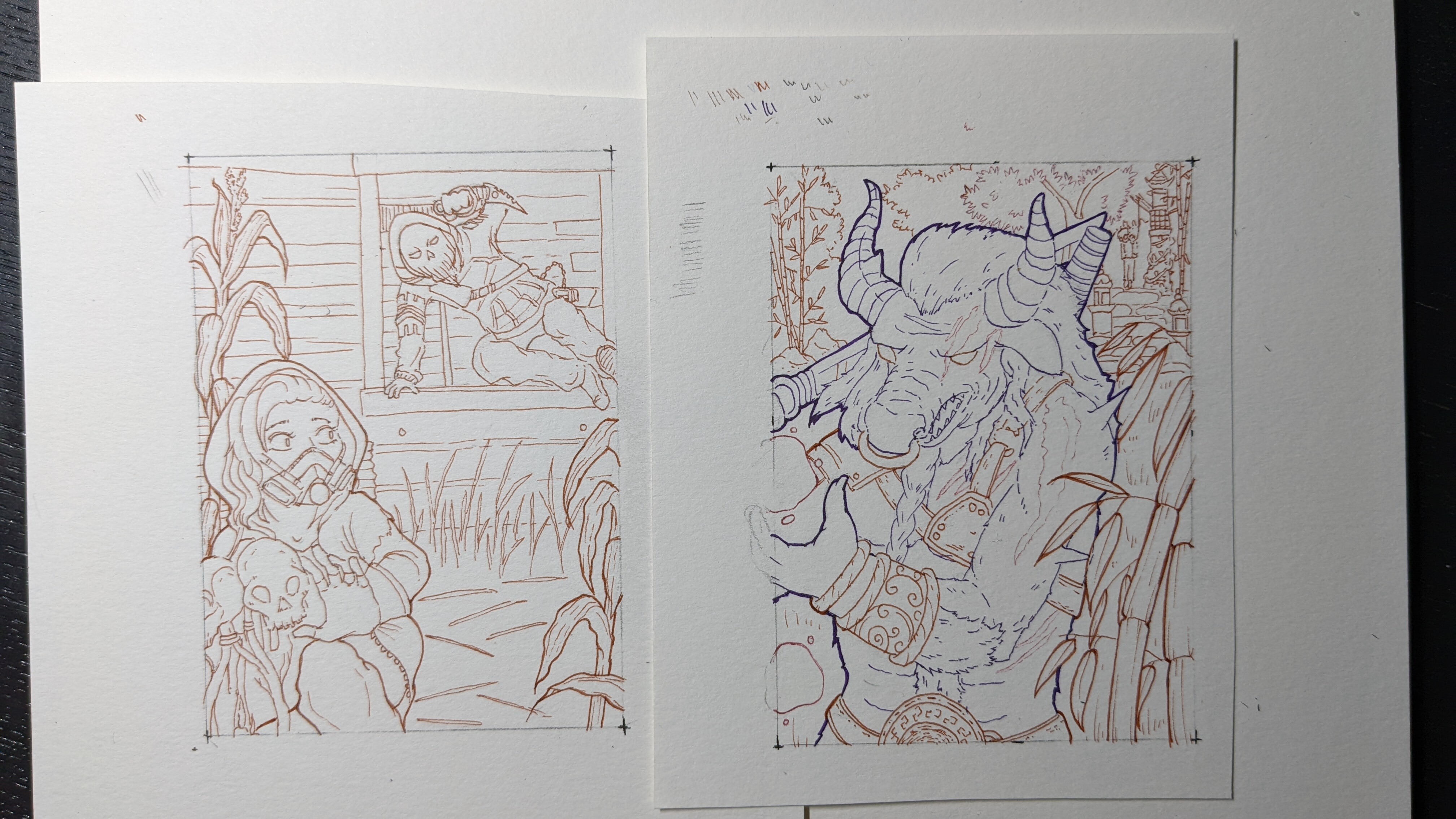 Hier sind zumindest zwei meiner Skizzen, die ich heute noch fertig machen will: