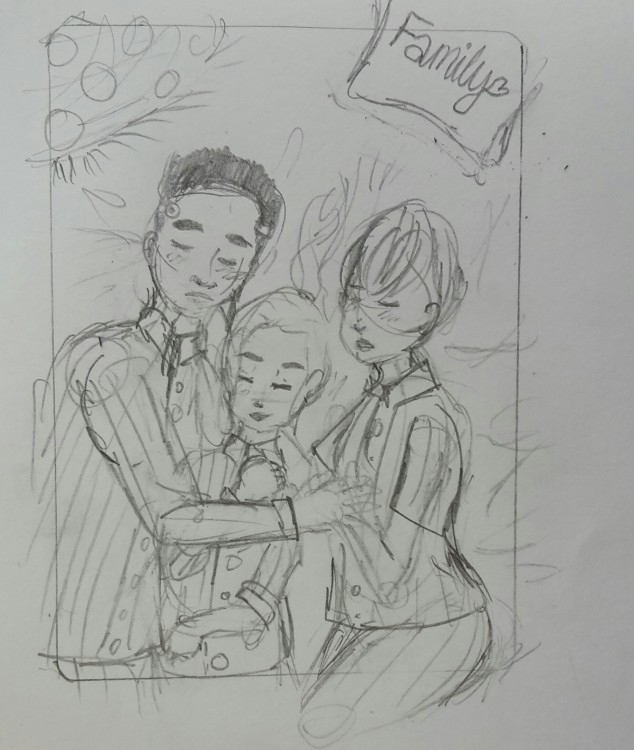 Ich hätte eine Frage: ich hätte als Idee, dass ich Kara, Alice und Luther in einem Bett male, wie die nebeneinander schlafen und knuddeln, wie eine richtige Familie es manchmal mit ihren kleinen Kindern macht.