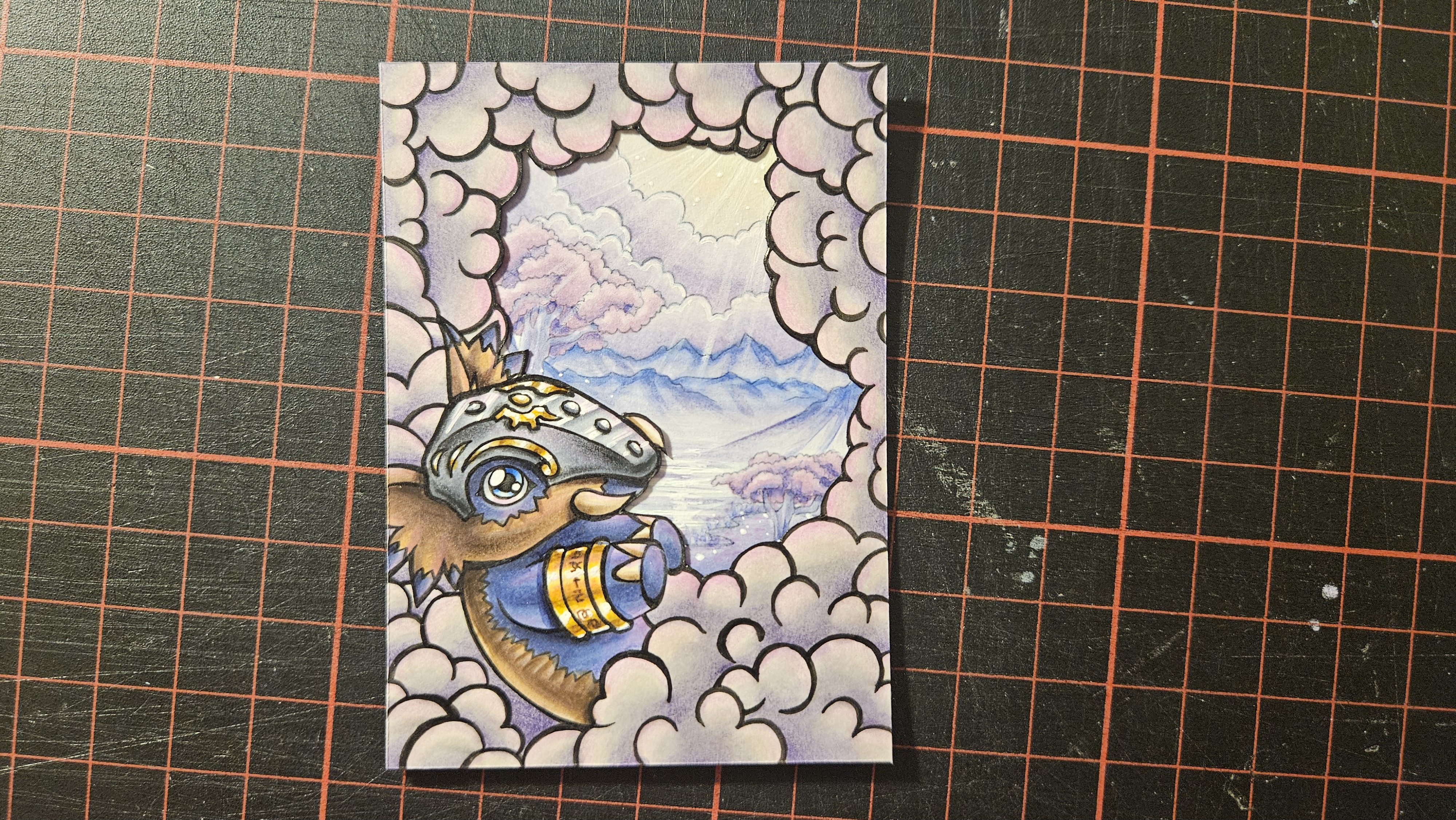 von mir gibts jetzt auch endlich mal was zu sehen >///< Wegen privaten Umständen, bin ich leider bisher noch nicht zu mehr gekommen. Meine erste Karte wäre soweit fertig gezeichnet, ich muss die Hälften nur noch mit Abstandhalterklebeband zusammenkleben. Dann entsteht ein schöner 3D-Effekt :)
