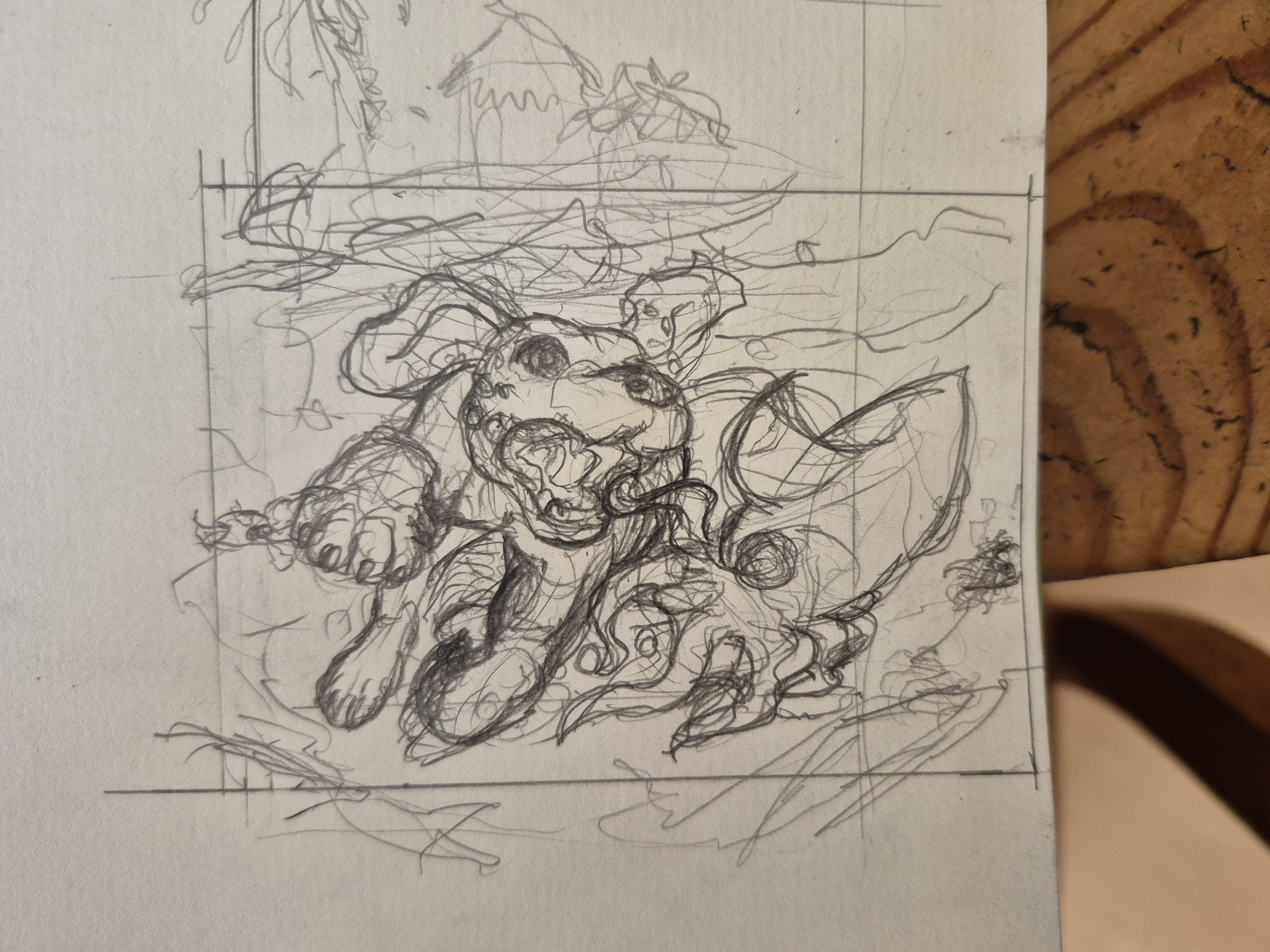 @BHO Der Hund ist schließlich ein “transportierbarer” NSC im Spiel. Den dürfest Du natürlich auch zeichnen :) Wichtig wäre mir ein erkennbarer dazugehöriger “Dredge”-Hintergrund bzw. Kontext zum Spiel :)