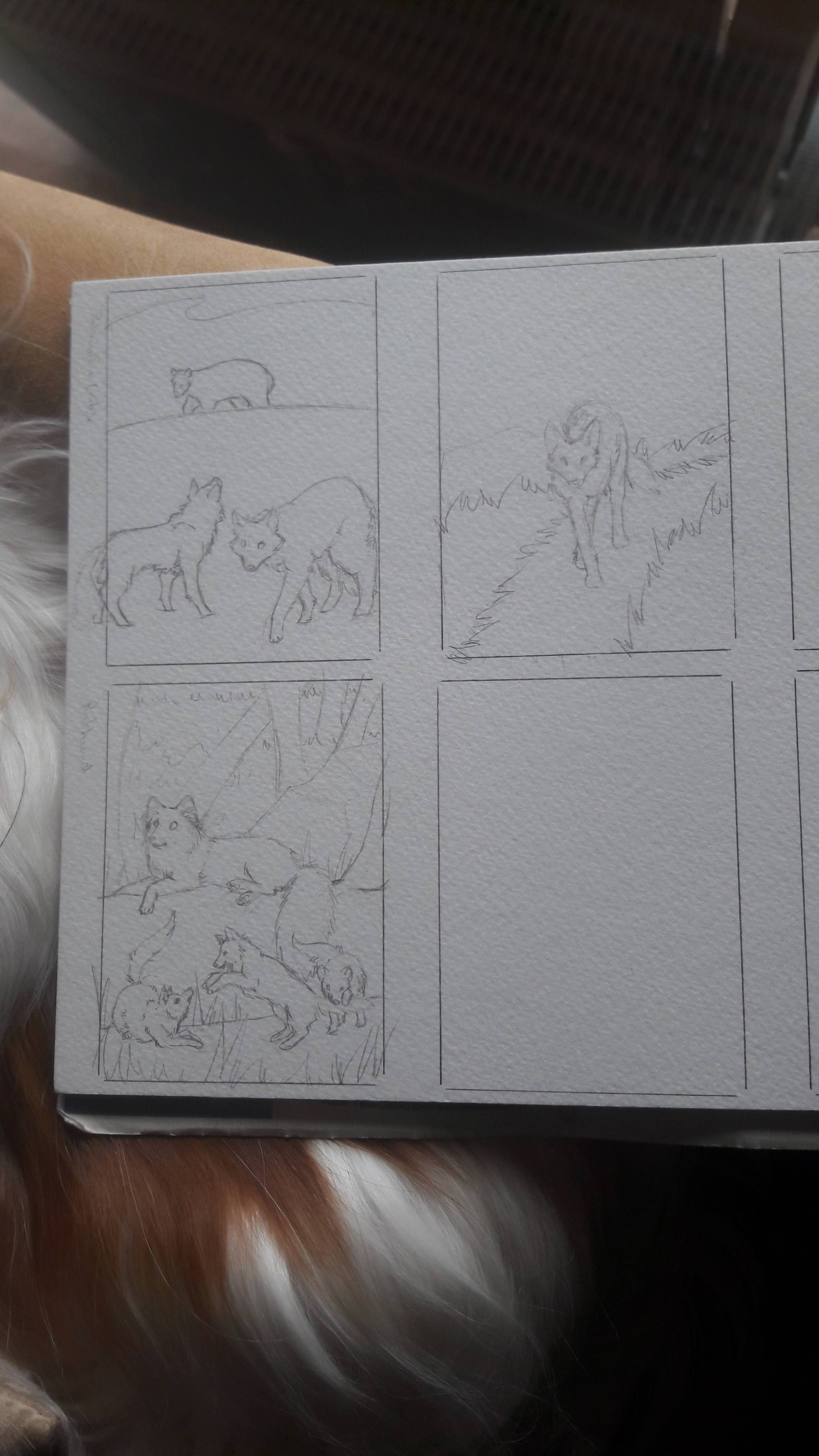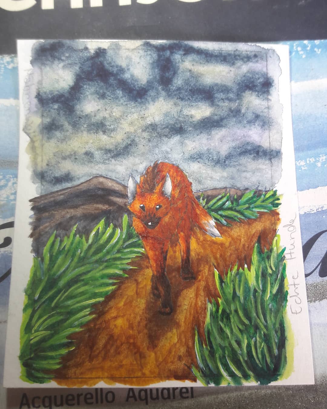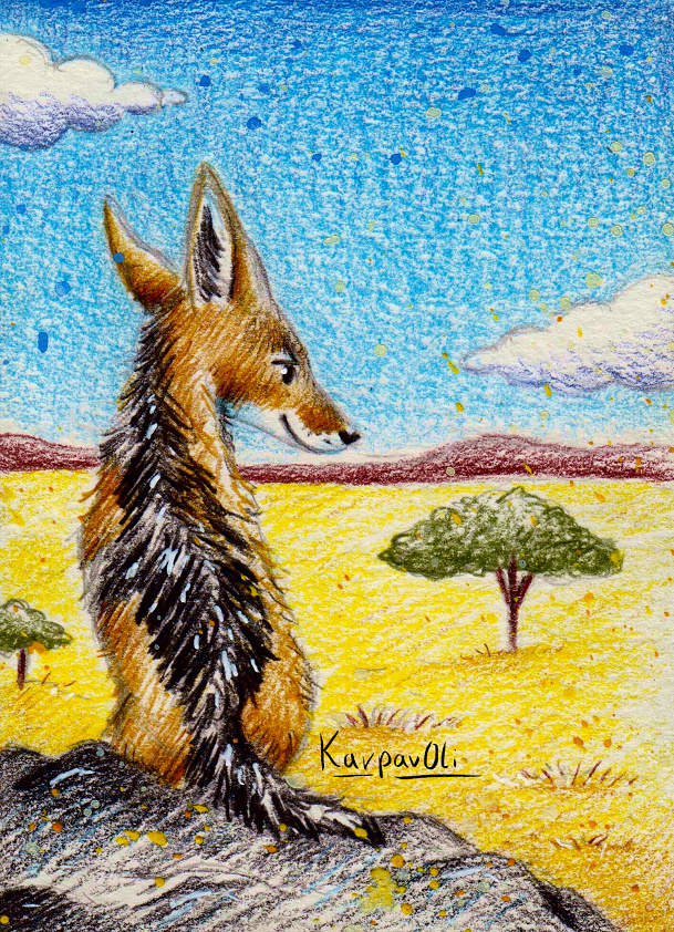Oben rechts ein Mähnenwolf. Hintergrund ist von verschiedenen Fotos Boliviens inspiriert, da es auf den Fotos immer so wunderbar weitläufig wirkt und ich mir einen höher gelegenen Platz vorgestellt hab, ist der Horizont eher niedrig gesetzt und ebenfalls vergleichsweise schlicht. Beim Himmel bin ich noch nicht sicher, neige aber zu einer eher gewittrigen Himmel :3