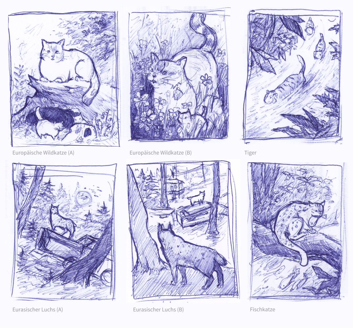 Momentan tendiere ich zu Eurasischer Luchs (A), Fischkatze, Europäische Wildkatze (A), bin aber noch nicht festgelegt. Wären die Motive so zulässig?