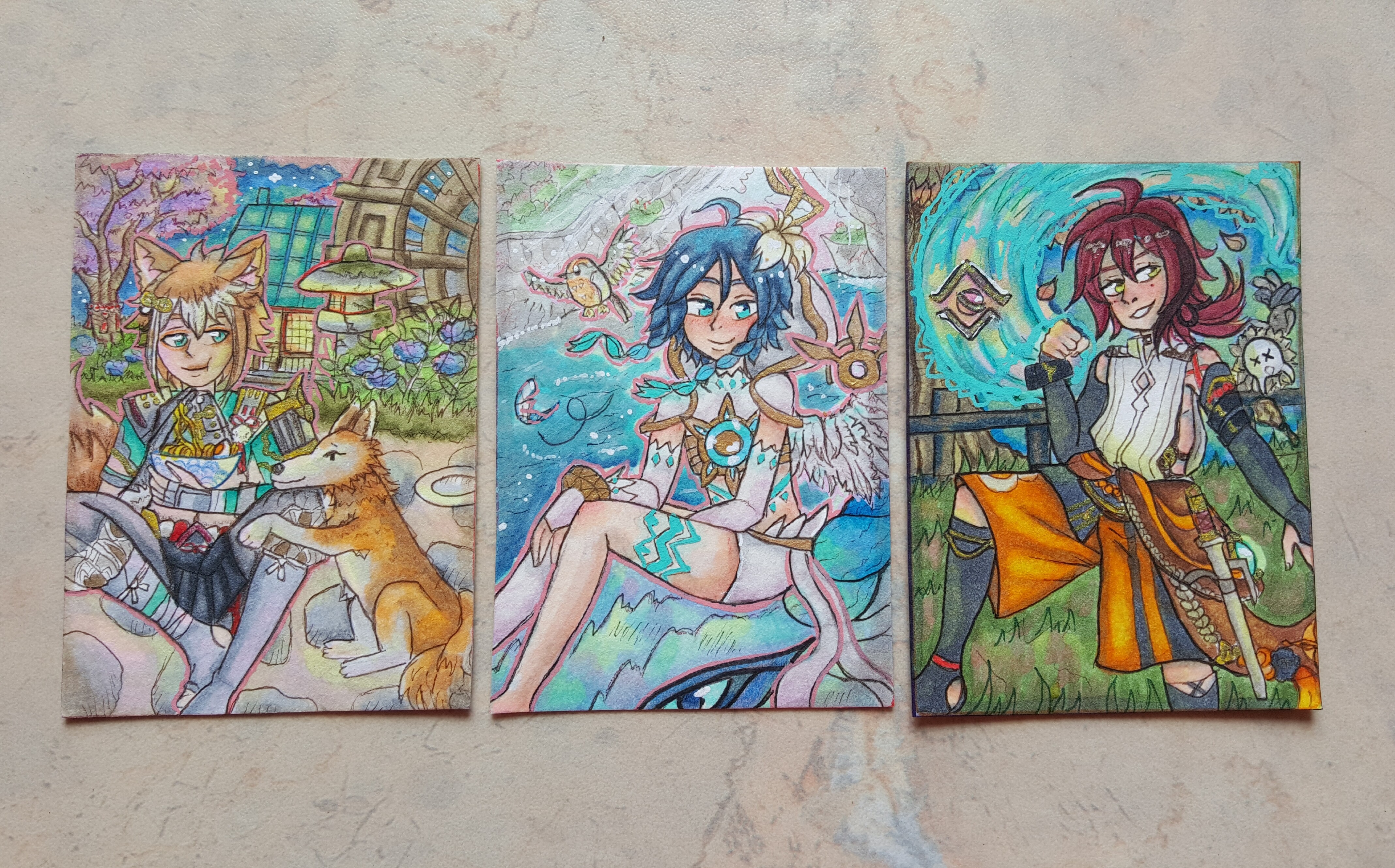Ich wollte nur auch kurz Bescheid sagen, dass ich meine Karten wohl auch alle erst gegen Pfingsten fertig machen kann. Hab aber die Skizzen soweit auch schon fertig. °^°/