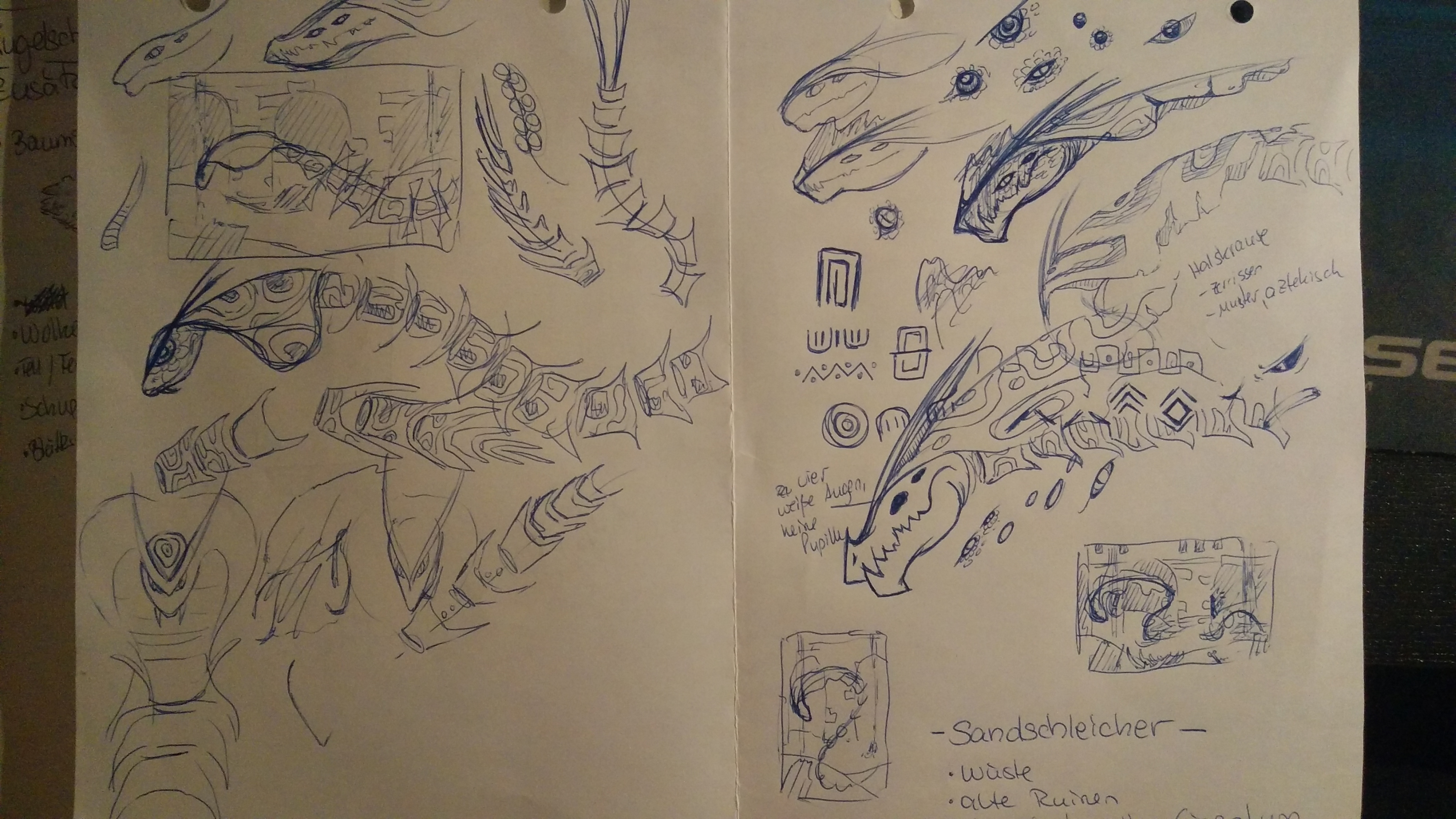 Skizzen und Kritzeleien habe ich für mein erstes Monster genügend xD Und ja, meine Skizzen sehen immer so durcheinander aus :D