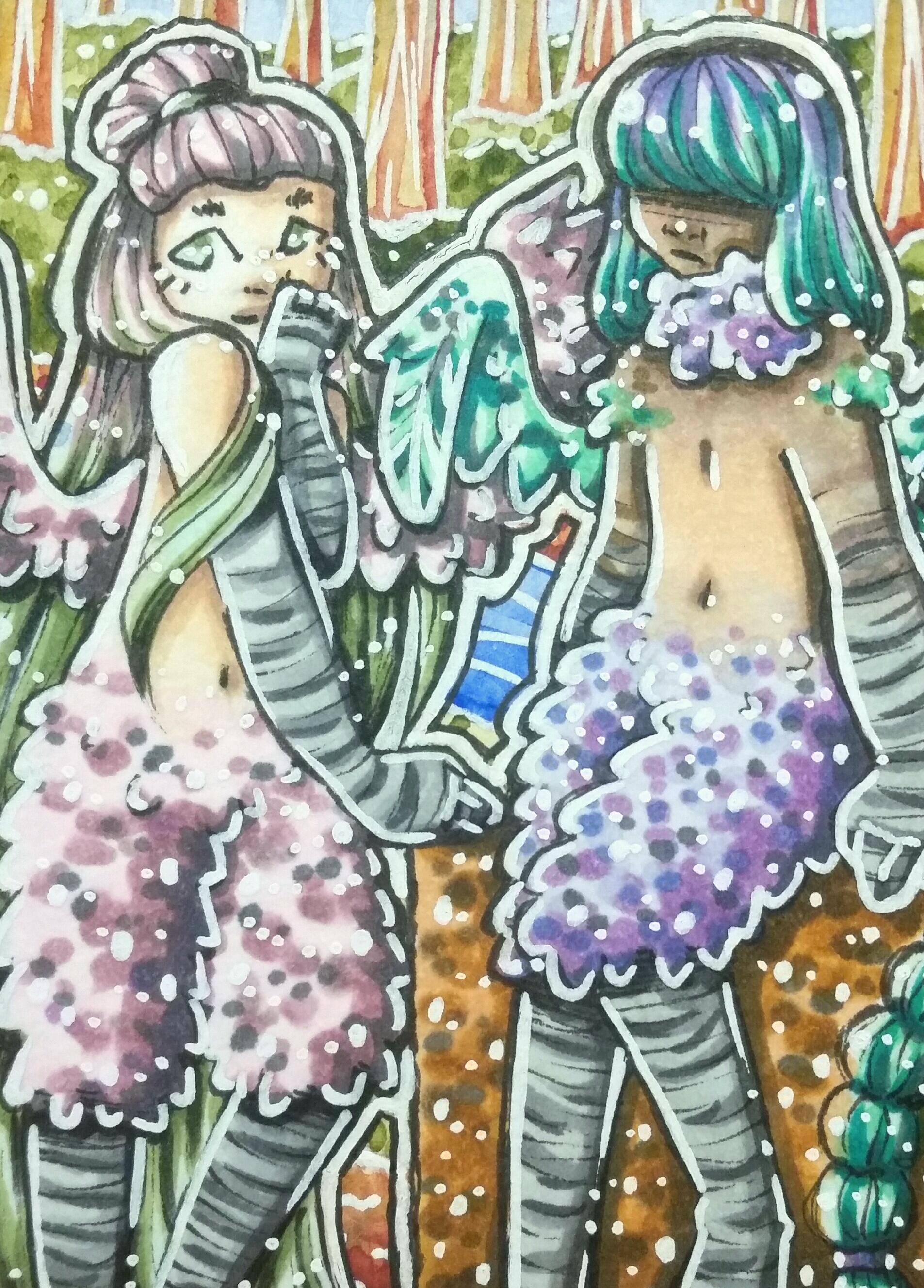 Die Farben gefallen mit gut und ich mag den natürlichen Hintergrund für die harpyien. Bei der einen Figur hätte ich Augen schön gefunden vielleicht auch geschlossene? Ist aber nur mein persönlicher geschmack