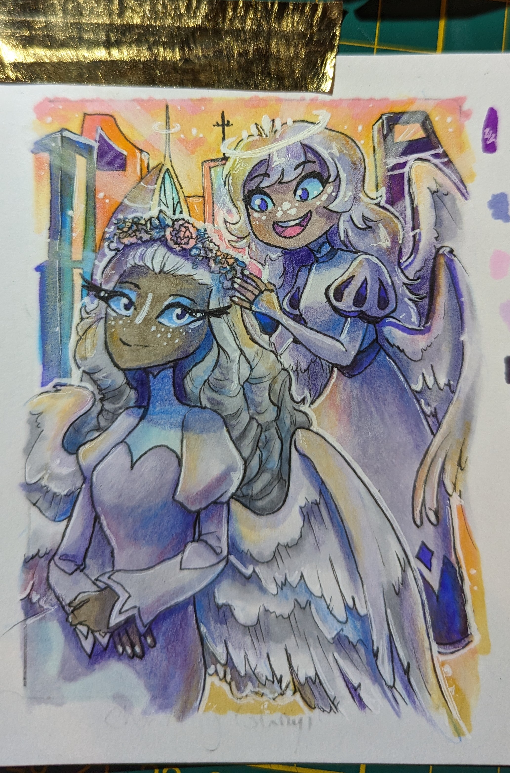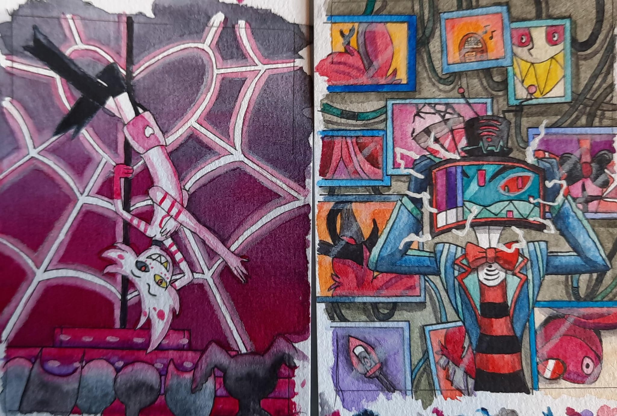 Optionaler Vorschlag: du könntest mit einem weißen Buntstift oder aquarellig aufgetragener Farbe noch so leichte Reflexionen oder/ und an den Innenkanten einen leichten Leuchteffekt bei den Bildschirmen einzeichnen um diesen elektronischen Look klarer zu machen.