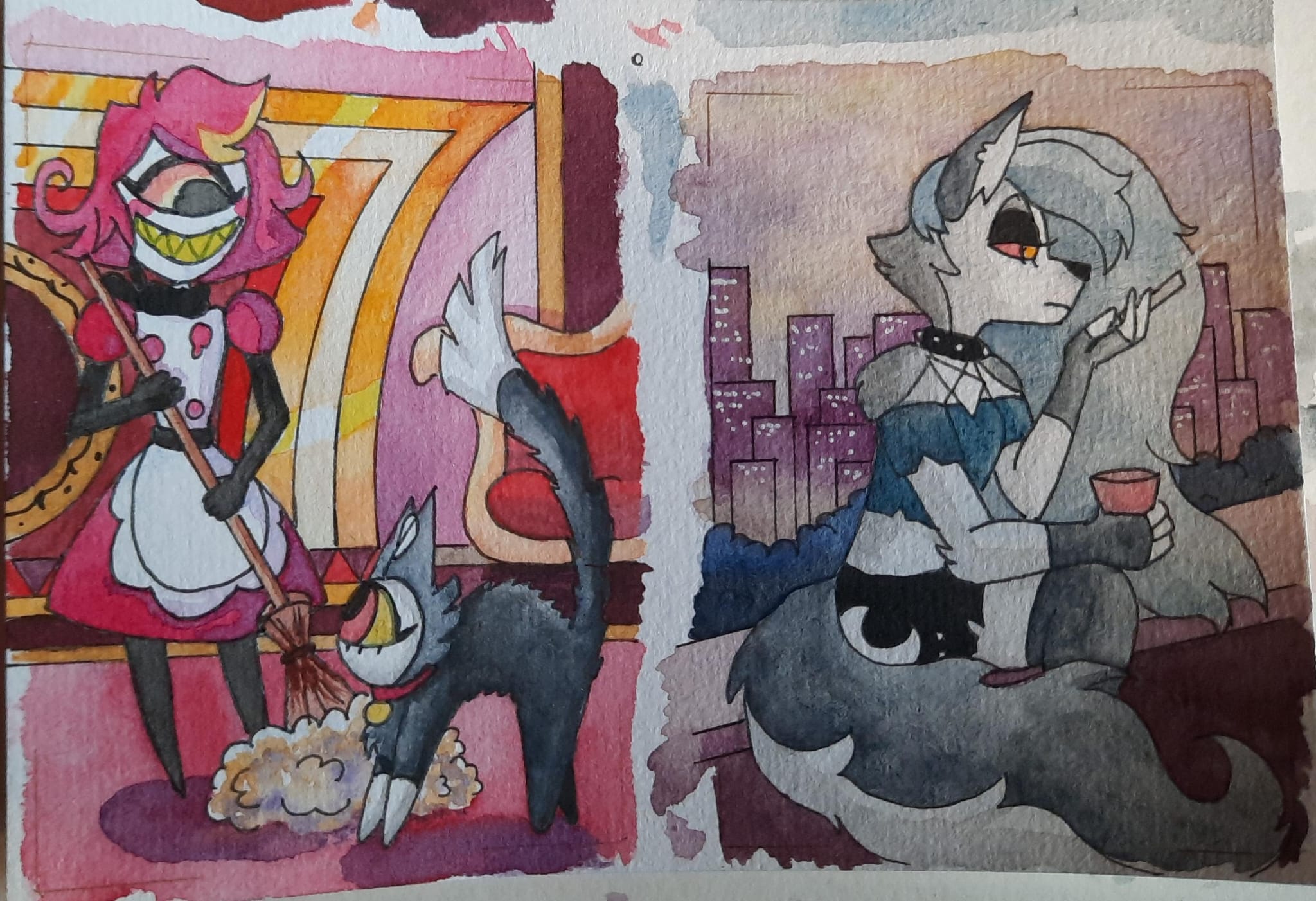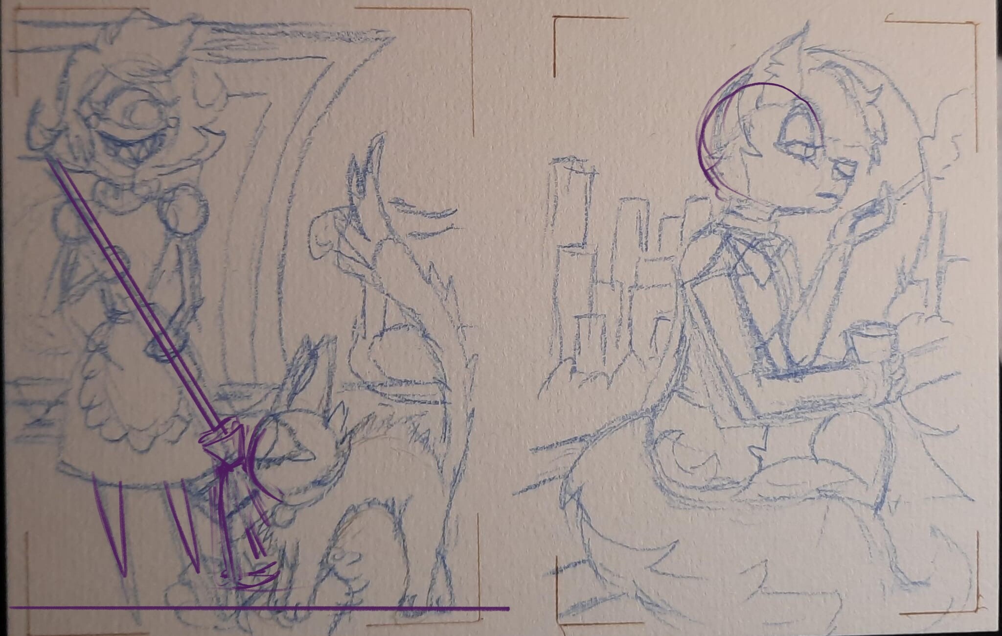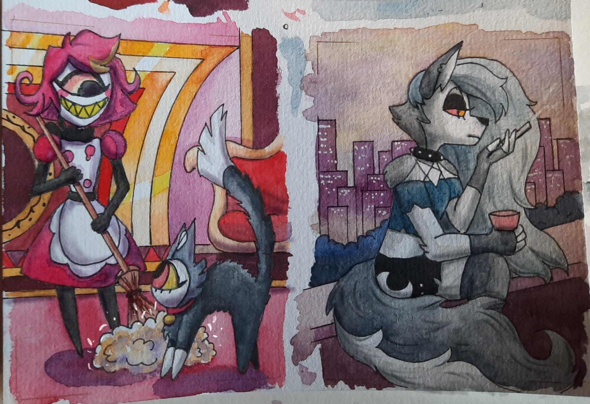 @Angelheard Whoo, coole Skizzen! Finde das funktioniert super mit der Pose und die zweite Skizze mit dem kleinen bisschen Alastor während Vox verzweifelt ist richtig witzig. :D