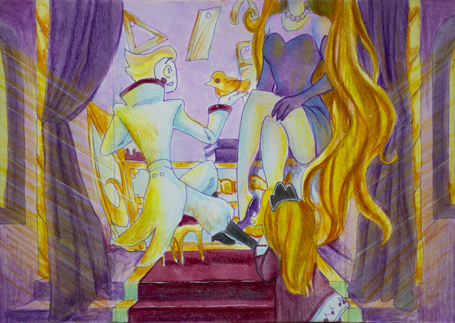 Kleiner optionaler Vorschlag: du könntest in den dunklen Bereichen - Decke, Stolas Hand, nochmal im Nachhinein mit einem hellen Copic über die weißen Highlights gehen um den harten Kontrast rauszunehmen. Finde das unterstützt sanfte Szenen immer noch etwas mehr weil die Highlights erhalten bleiben aber weicher wirken. Aber nur wenn du magst, finde die Karte so auch schon super geworden!