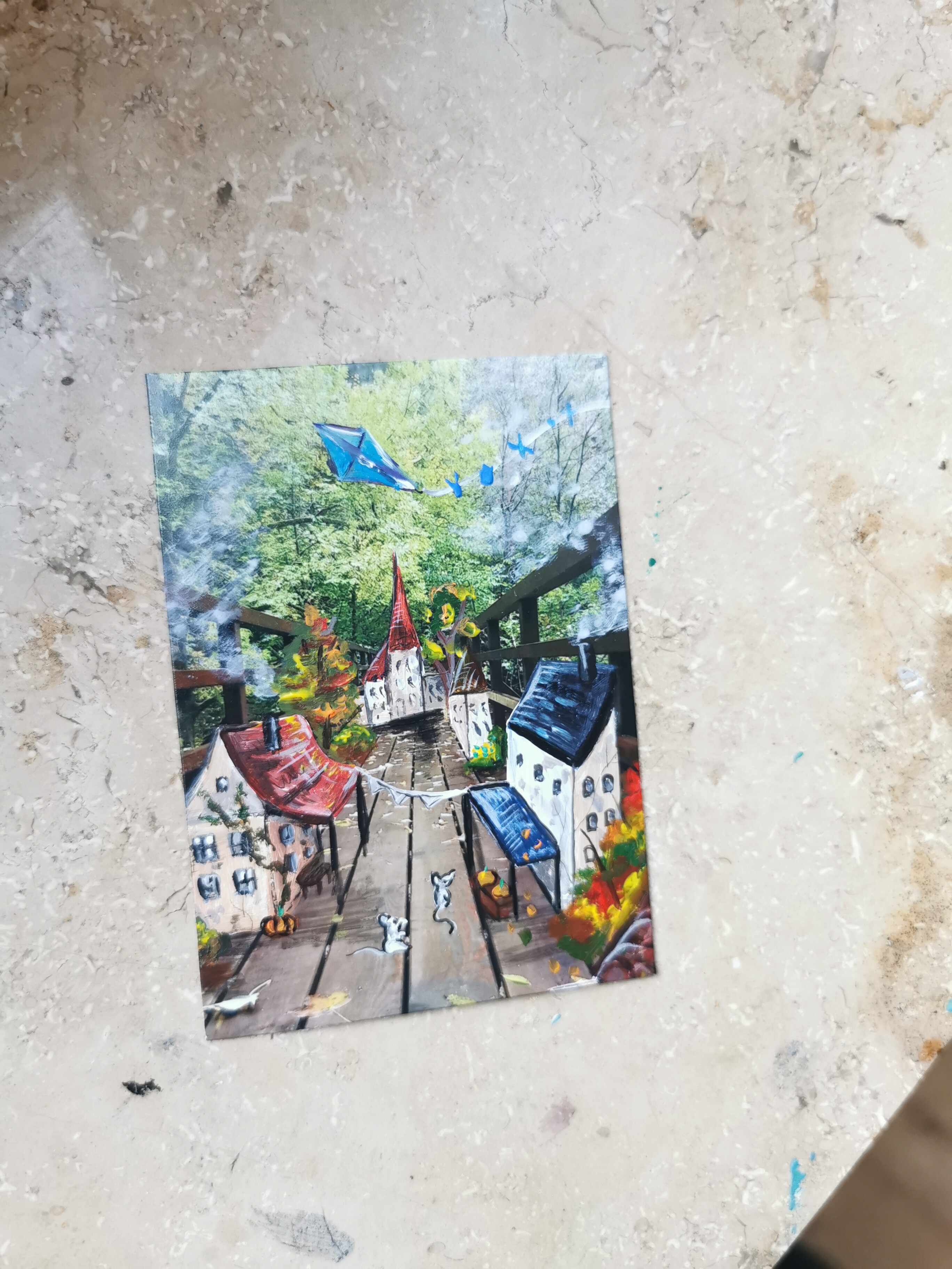 Ich hab mal kurz Kind frei und mich fix an die erste Karte gesetzt. Ob ich alle so male bzw das Foto auf die weiße mit einbinde, weiß ich noch nicht. Es ist wirklich mühsam :D